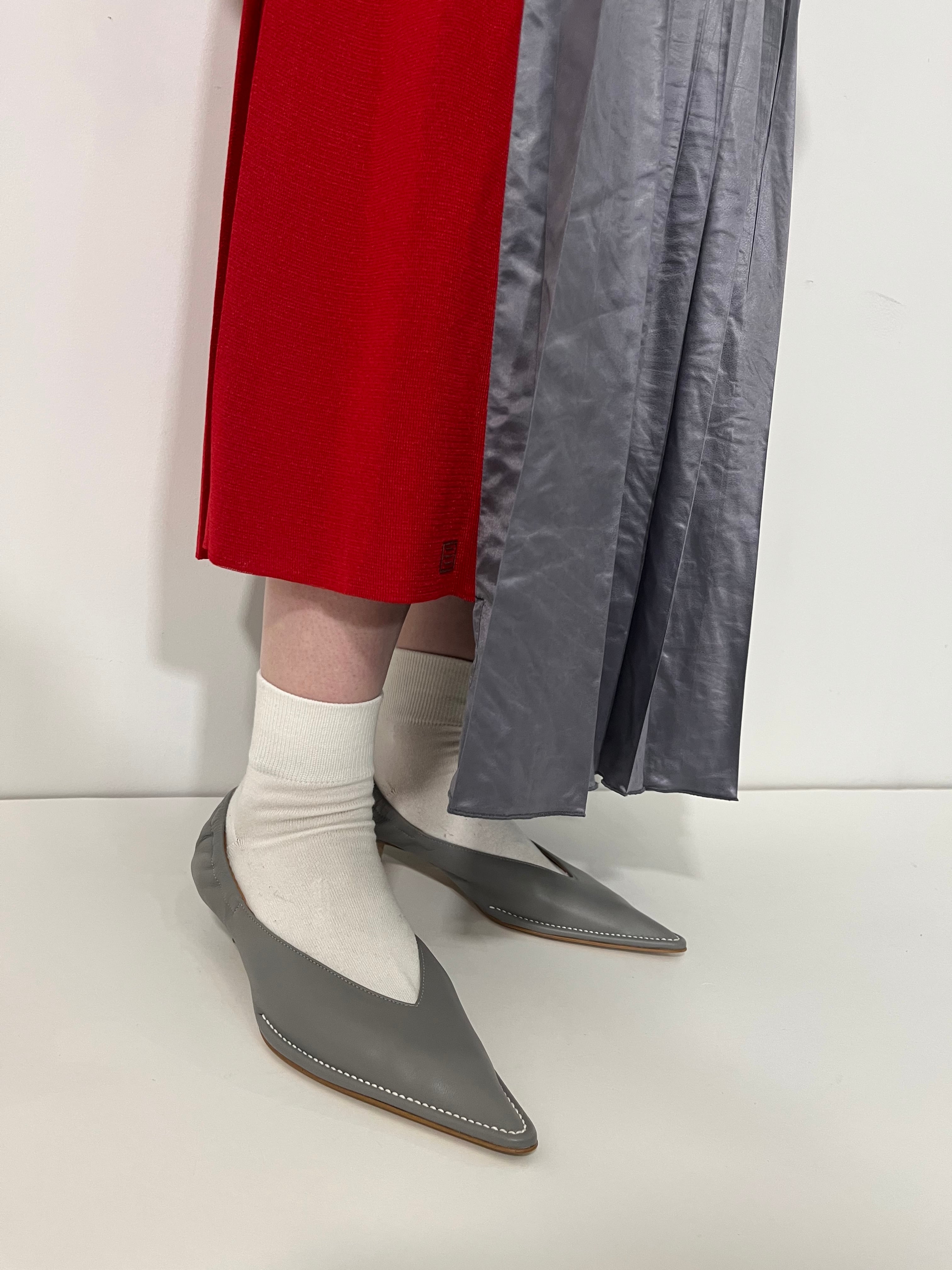 柔らかく足あたりの良いラムレザーで、かかと部分はシャーリングデザインで着脱もスムーズです。