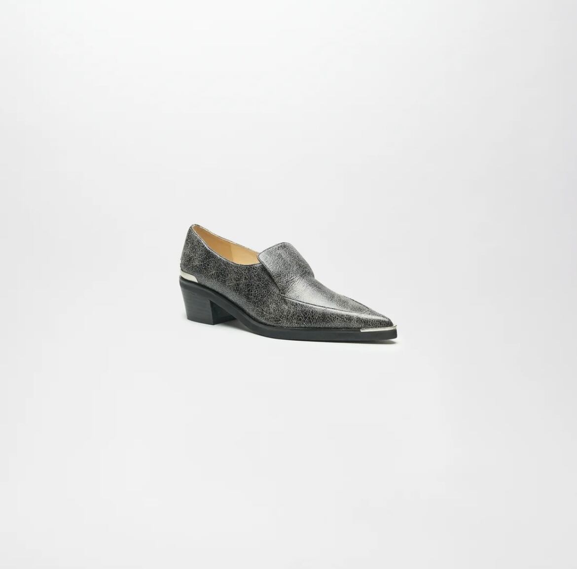 エッジを効かせた、マニッシュなポインテッドトゥローファー。