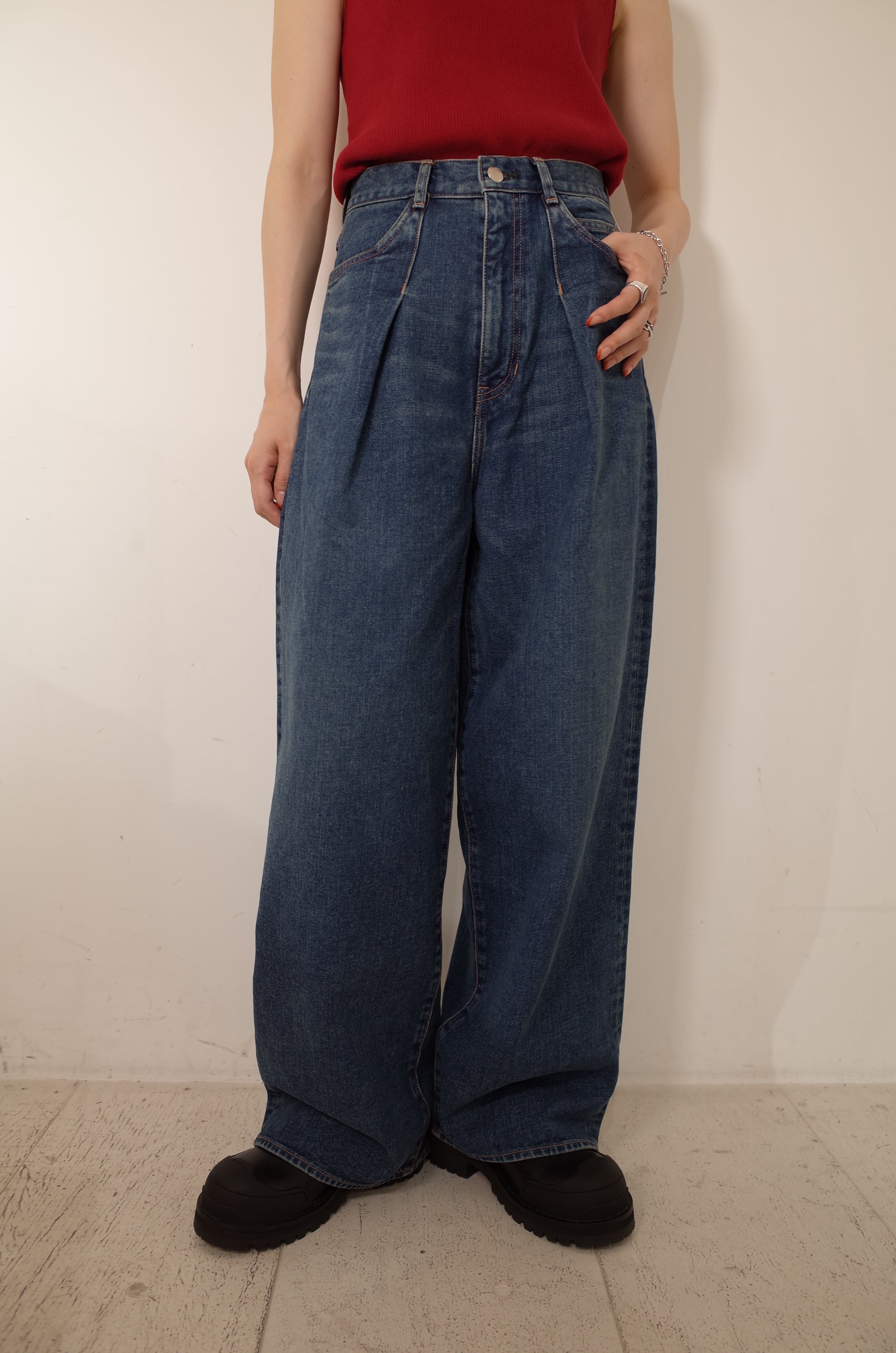 【 JANE SMITH 】14.5oz DENIM IN TUCK COMFORT TAPERED PANTS