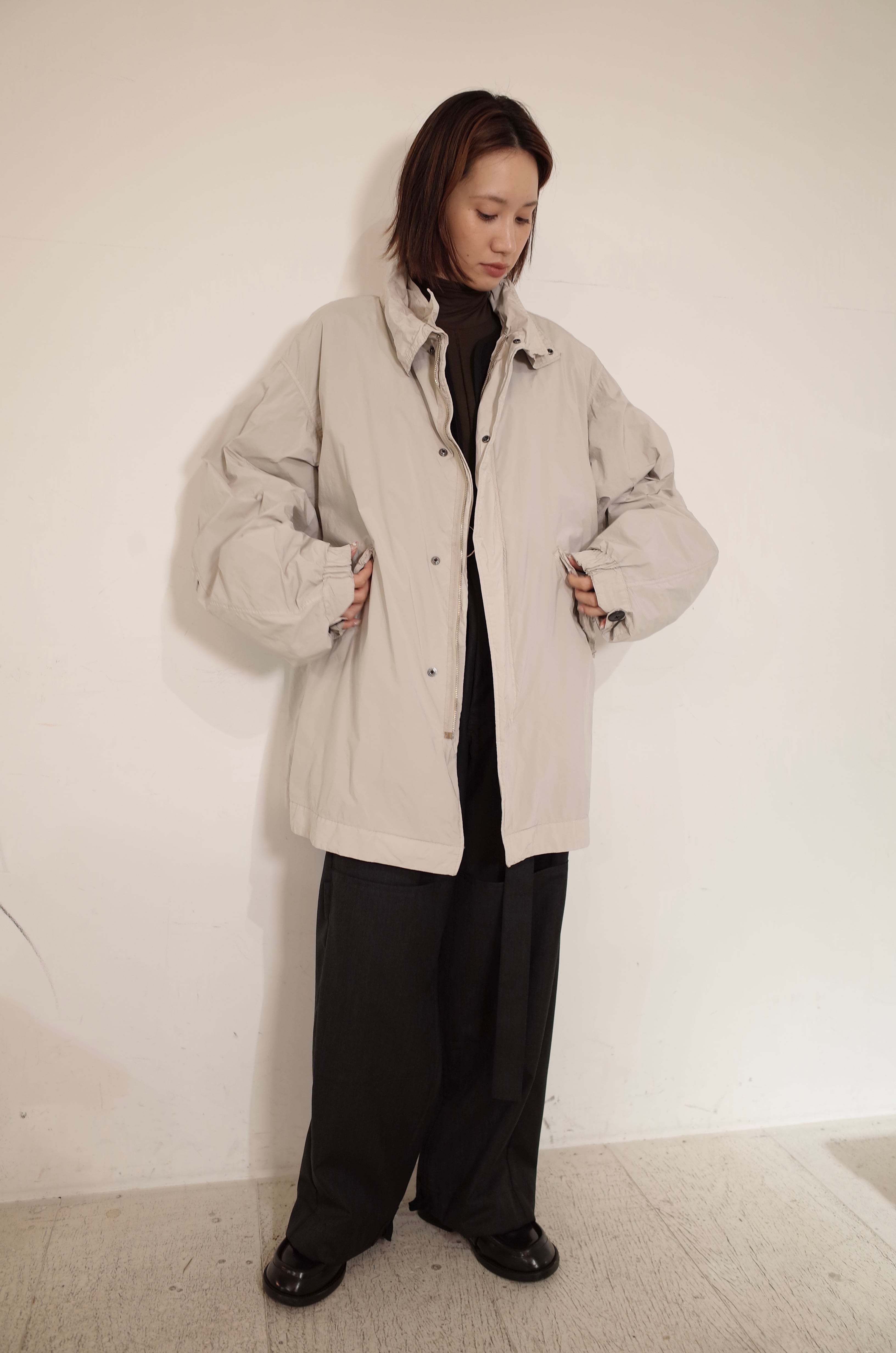 フードを取り、裾を横方向にスパッと切ったようなデザインで、ブルゾンのような丈が新鮮なショートコートです。また、高密度のナイロンの表地、ライナーにはウール混の生地を使用し、真冬でも温かく着ていただけます。