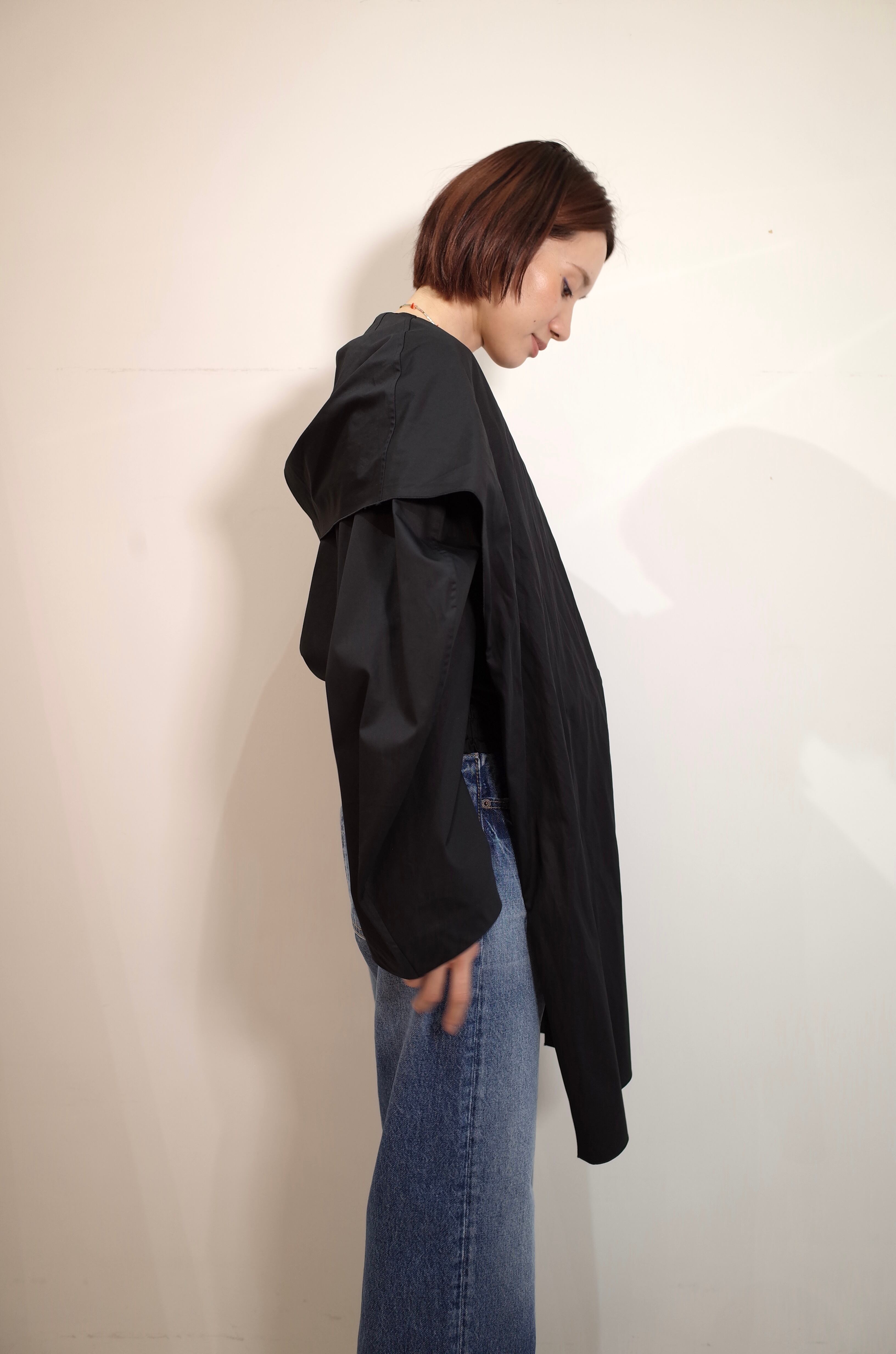 フードのようについたタイが特徴のシャツ。