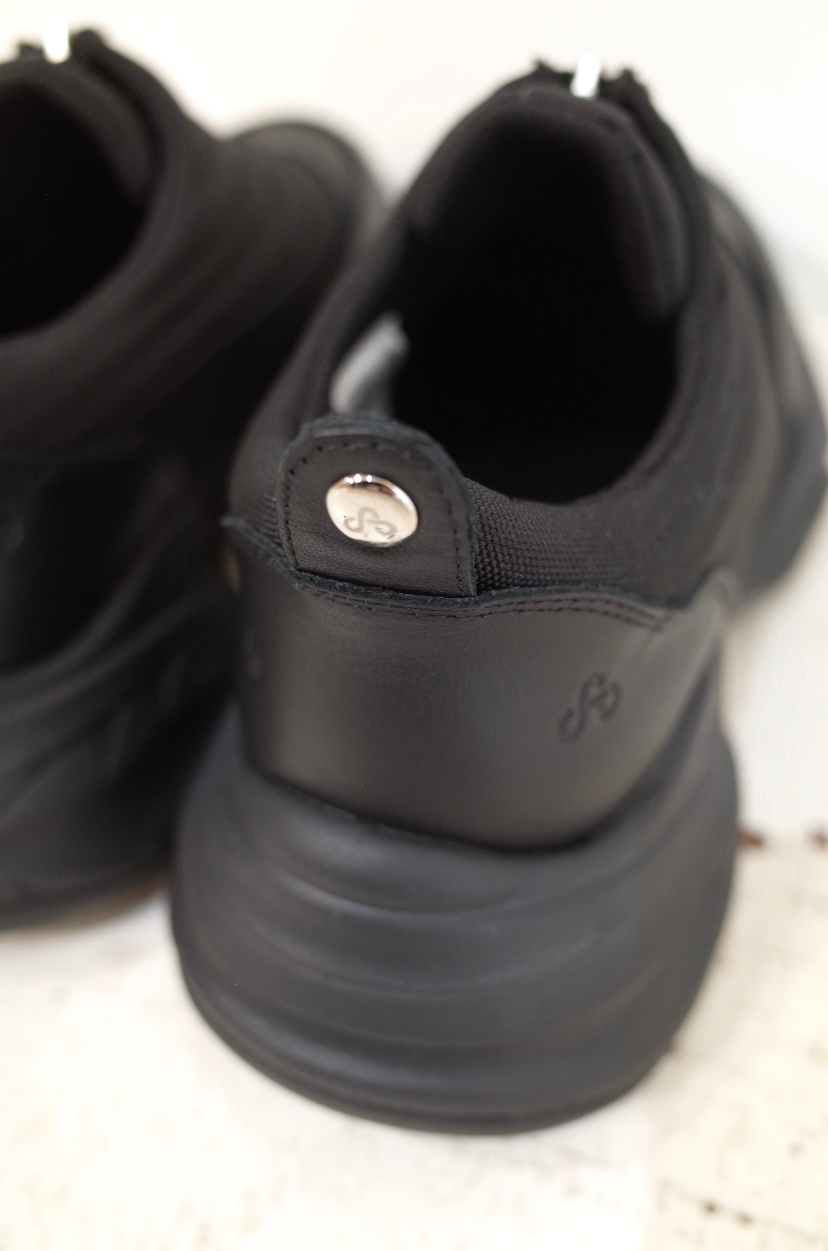 日常ではストレスになる「水と靴が触れること」が喜ばしく感じられるようにデザインされ、水面の動きと呼応するような波の形状をステッチで表現しています。