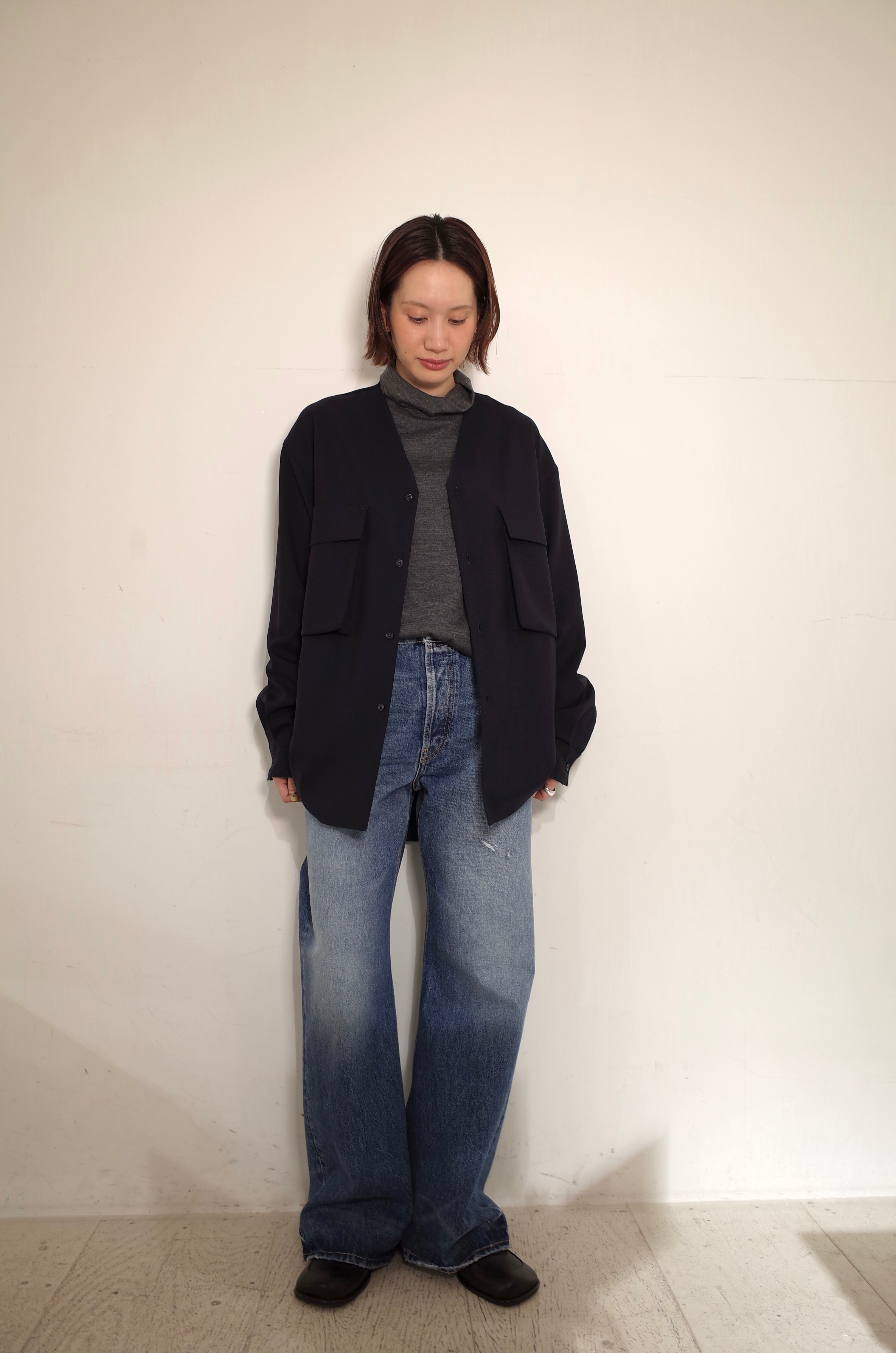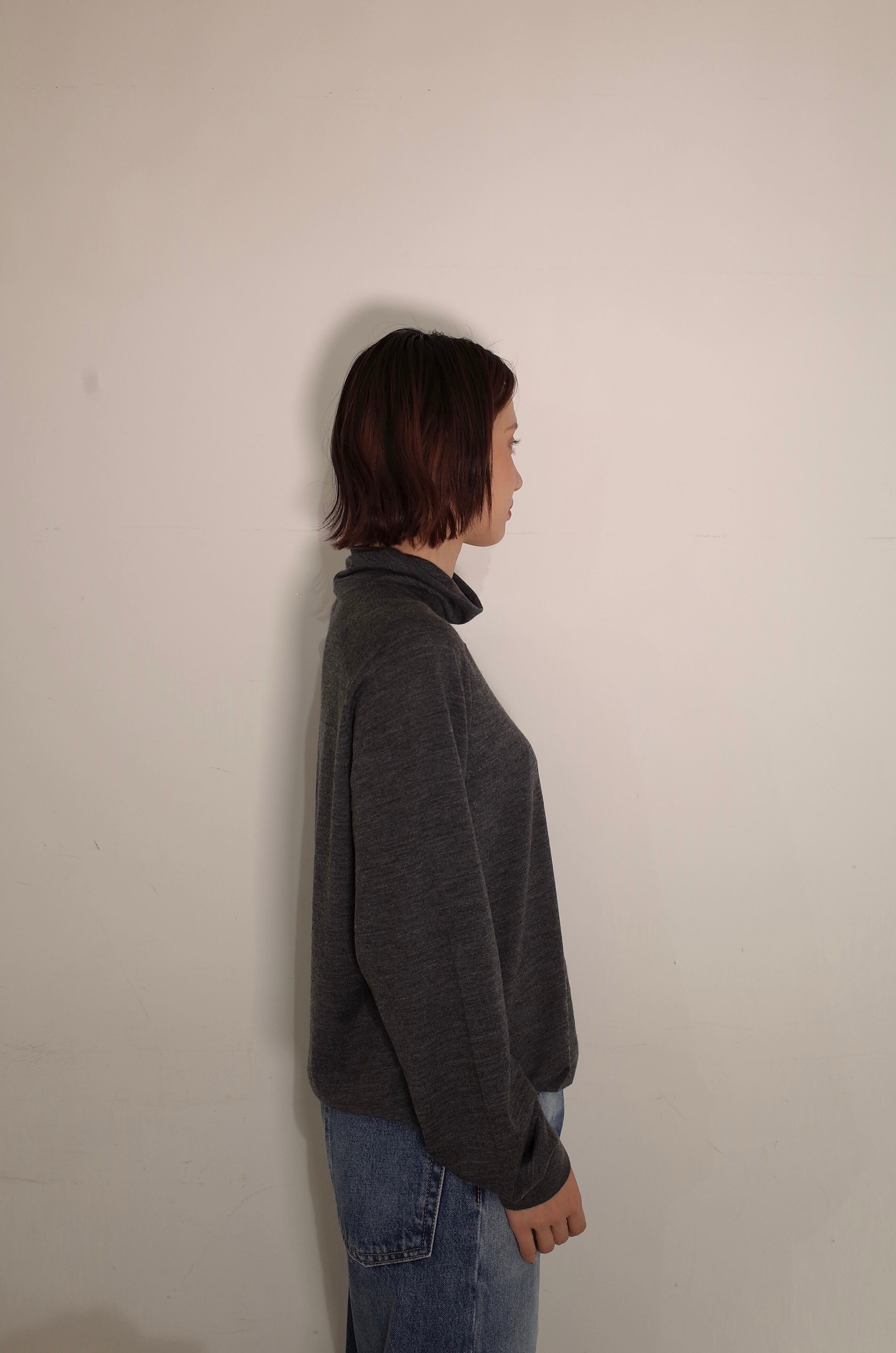現代に必要な秋冬のニットプロダクトとしての実用性を検討に検討を重ねたハイネックは、ぴったりしすぎず、かつ緩くて襟が決まらなすぎるの中間の着地を実現。