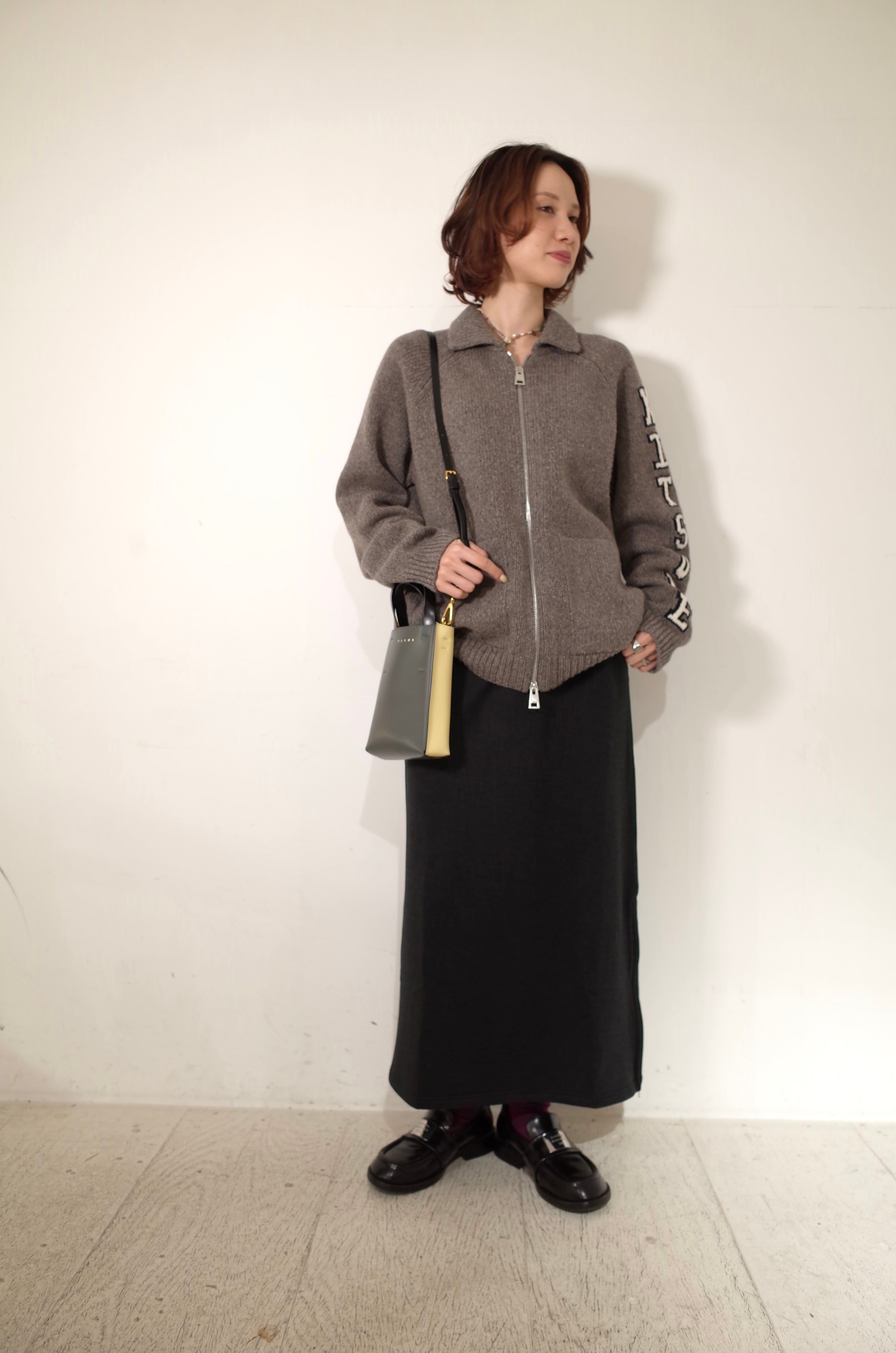 左裾のファスナーでスリットありなしが楽しめるジップデザインスカート。