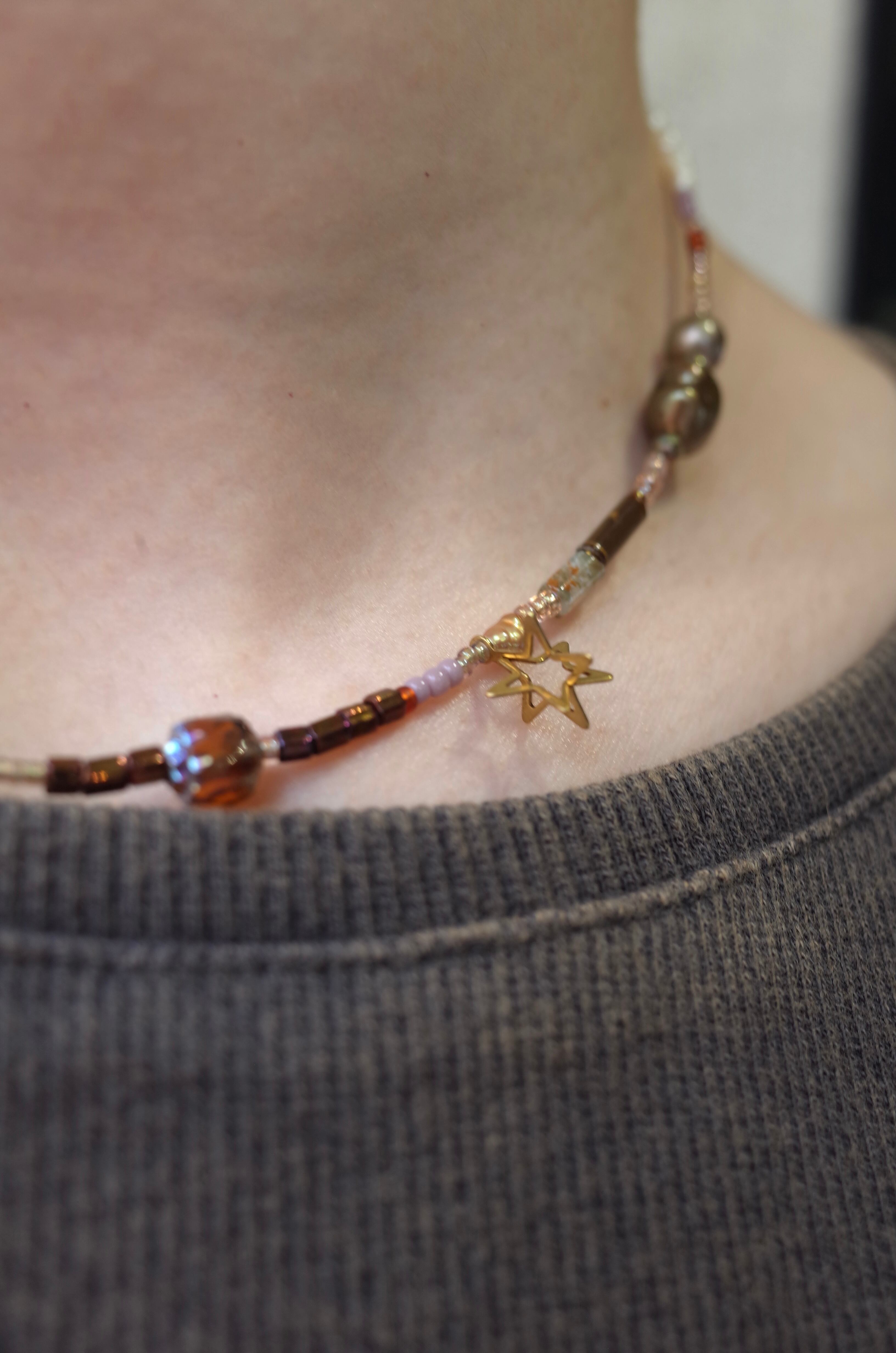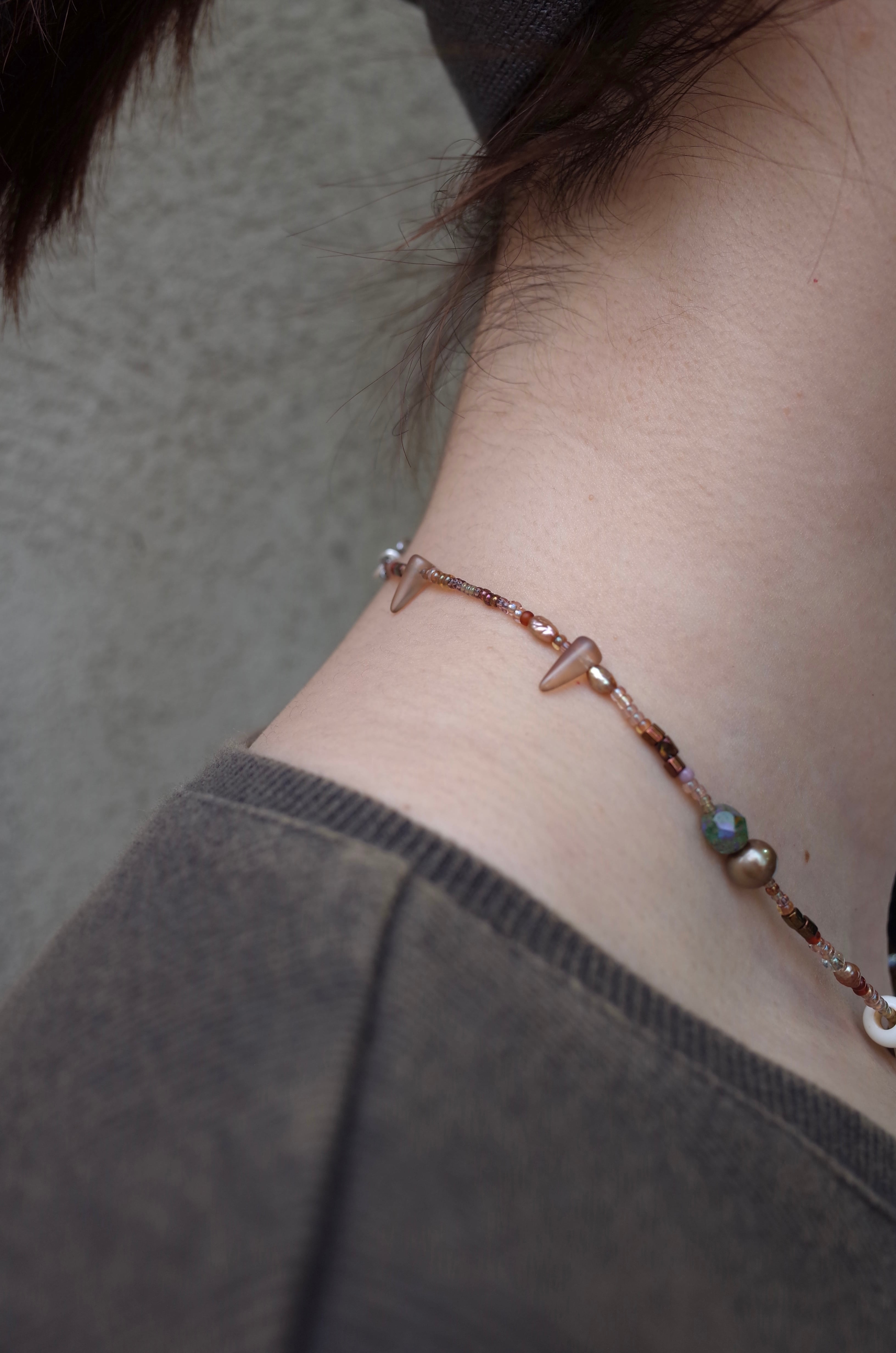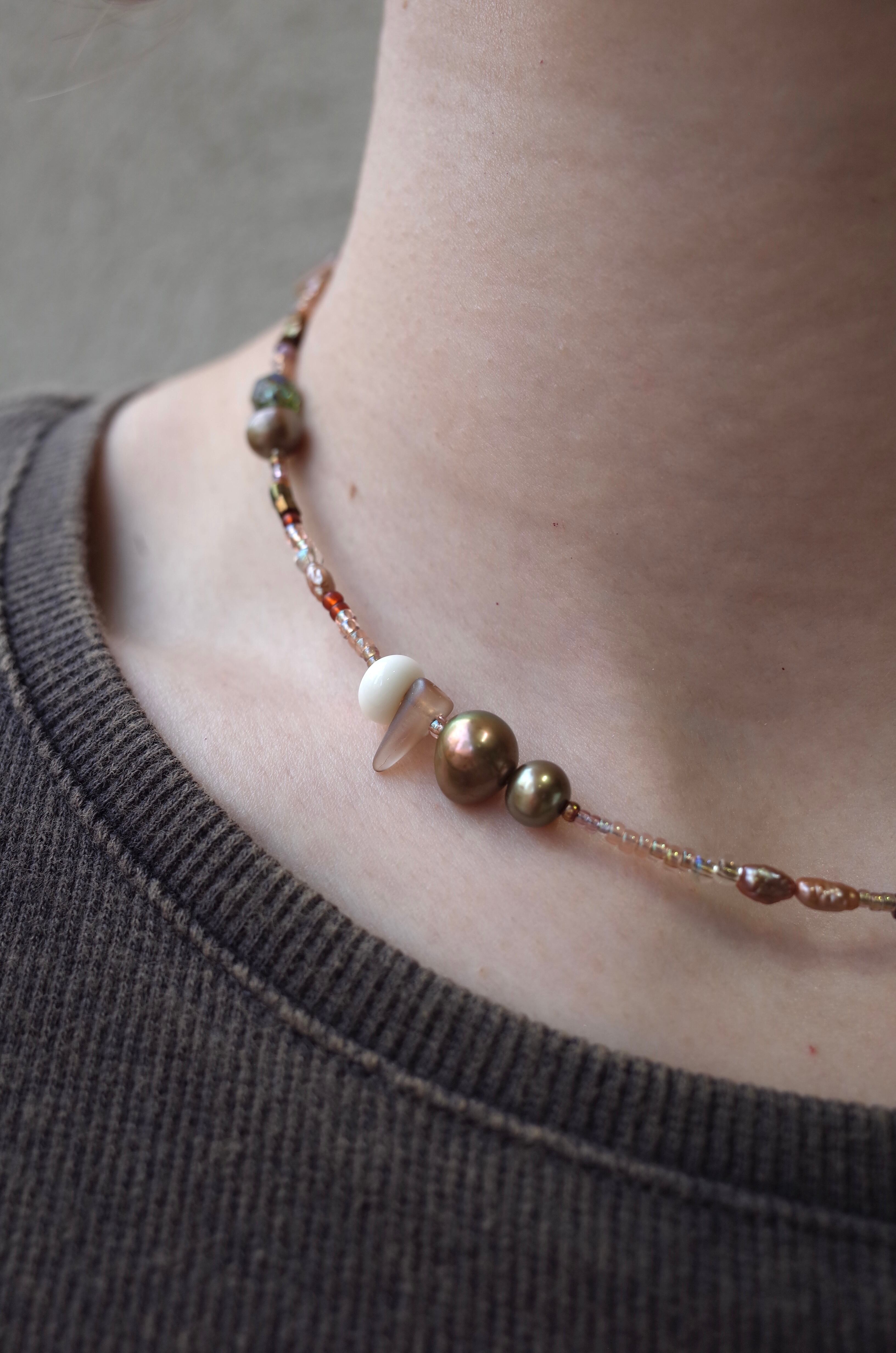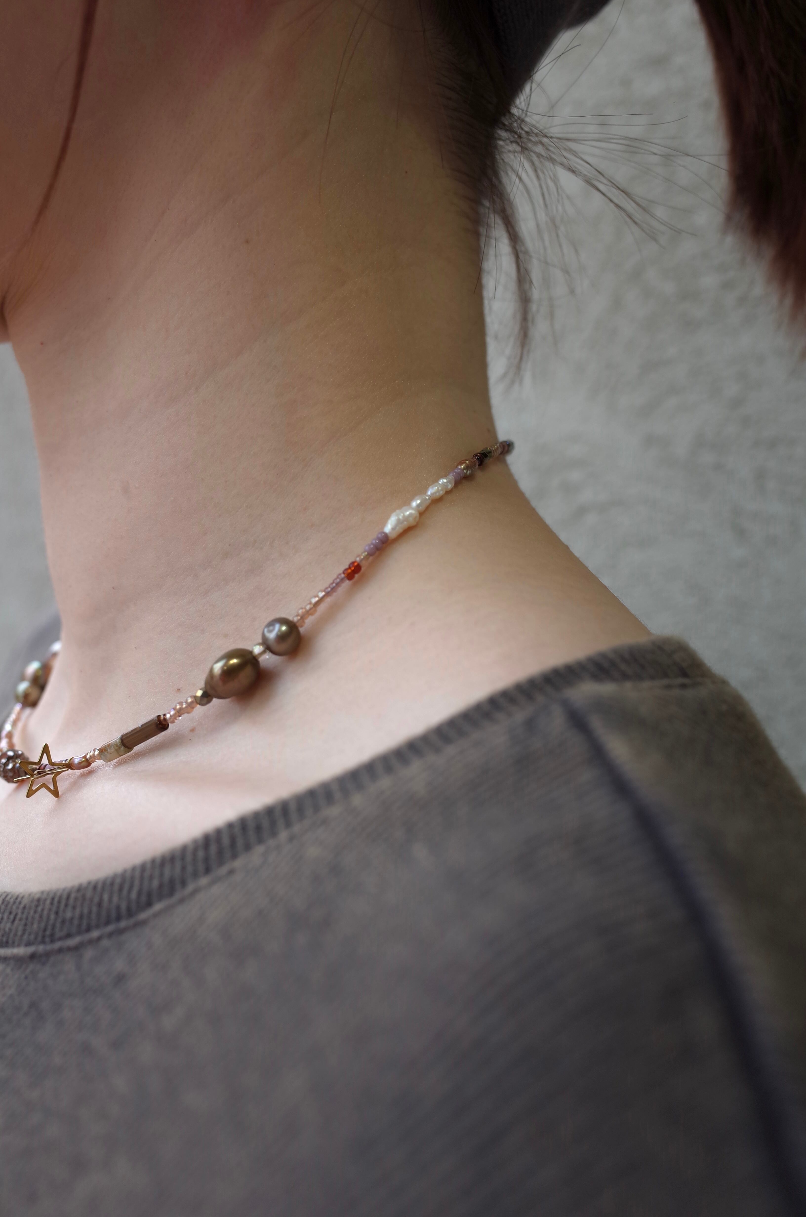 ビジュやパール、ヴィンテージのビーズを使った、1点もののネックレス。