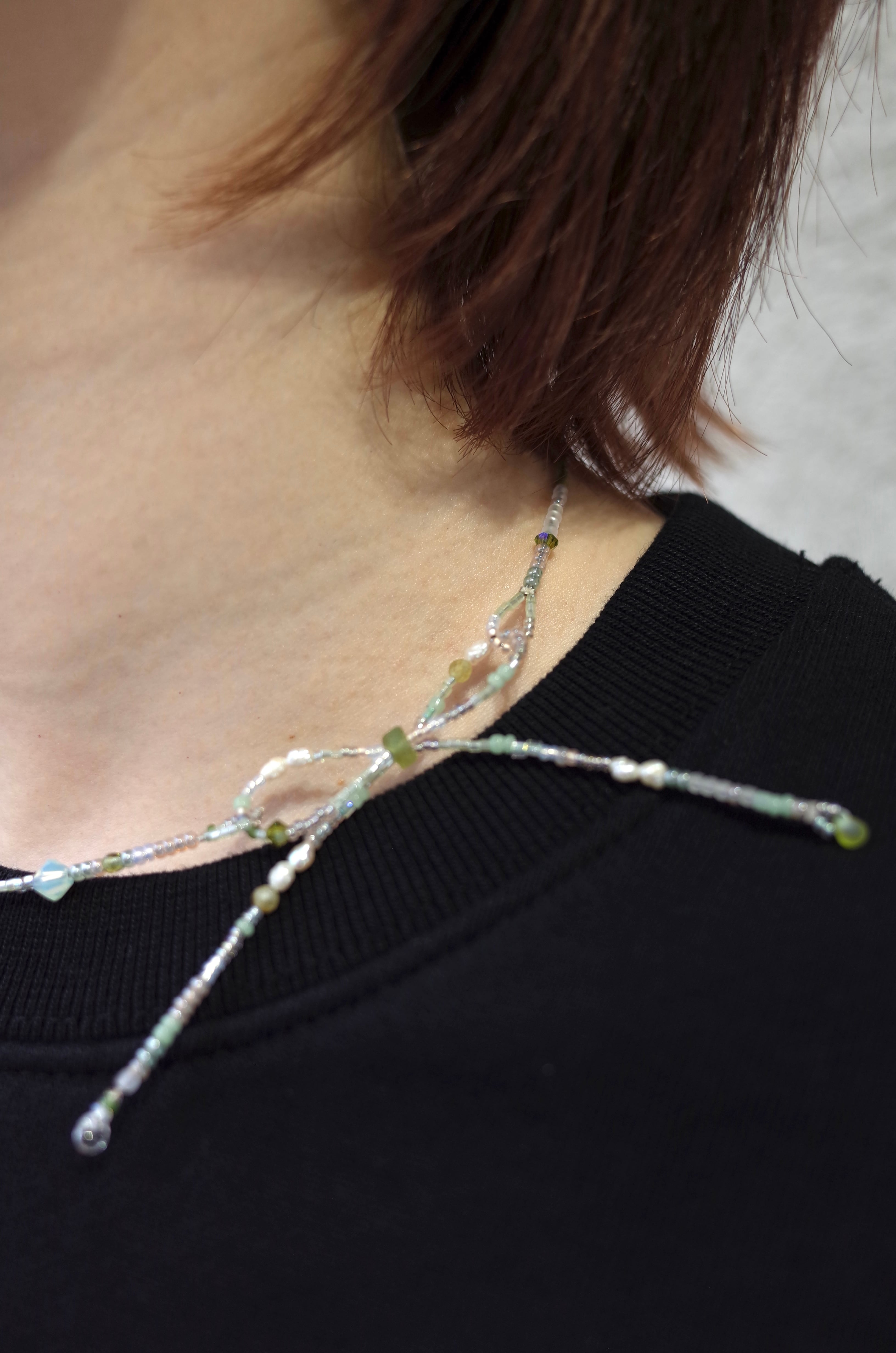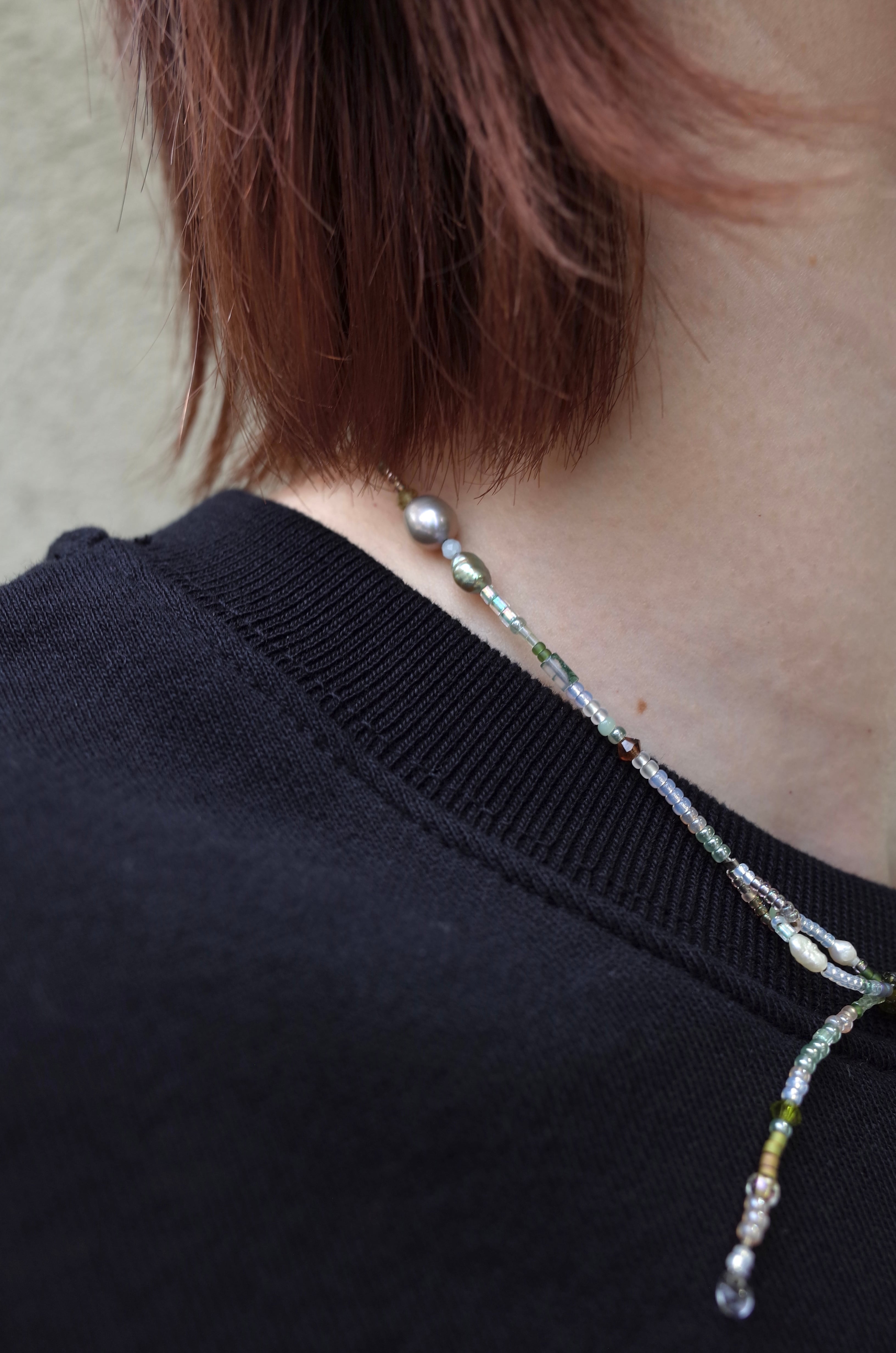 ビジュやパール、ヴィンテージのビーズを使った、1点もののネックレス。