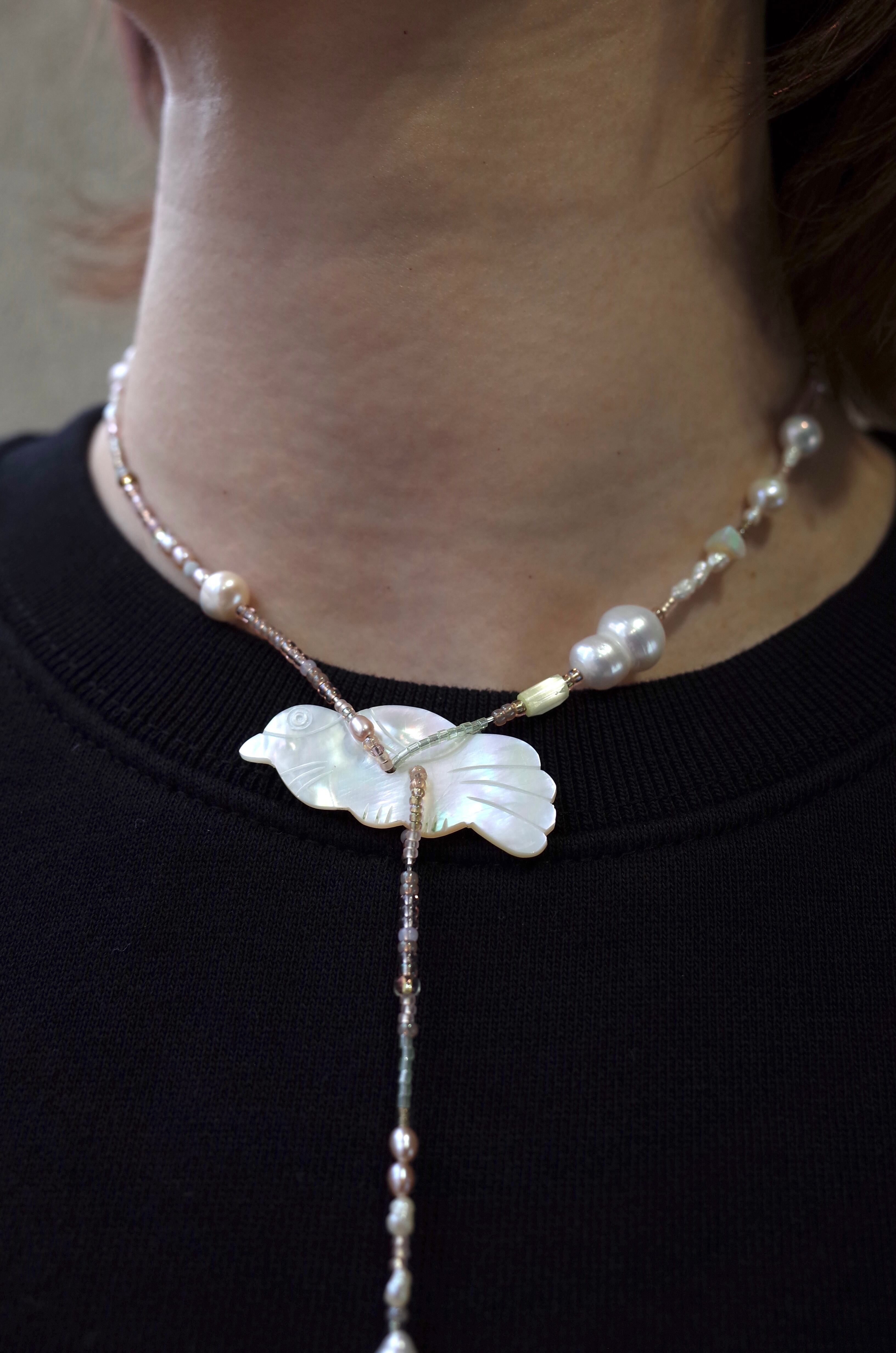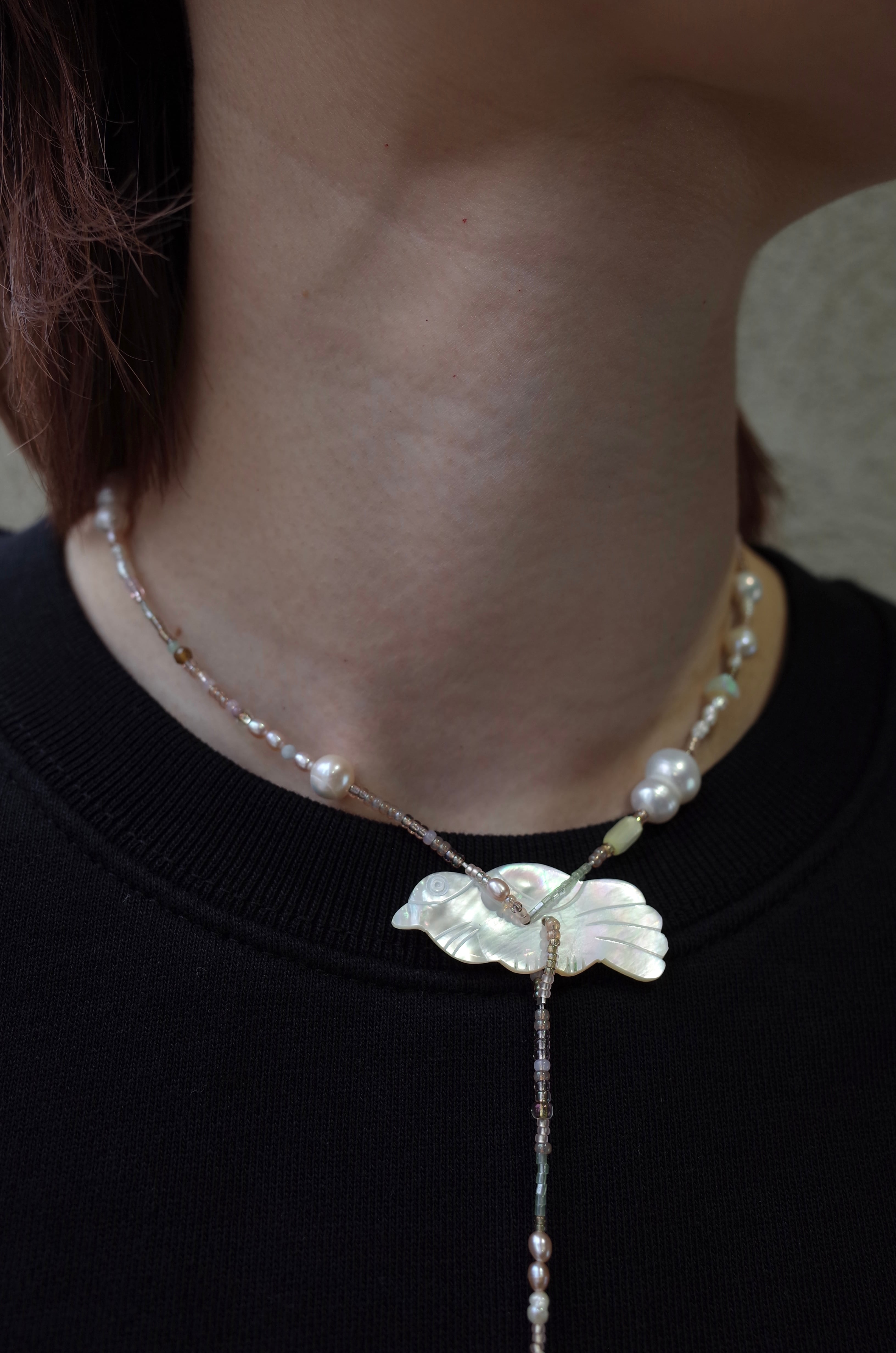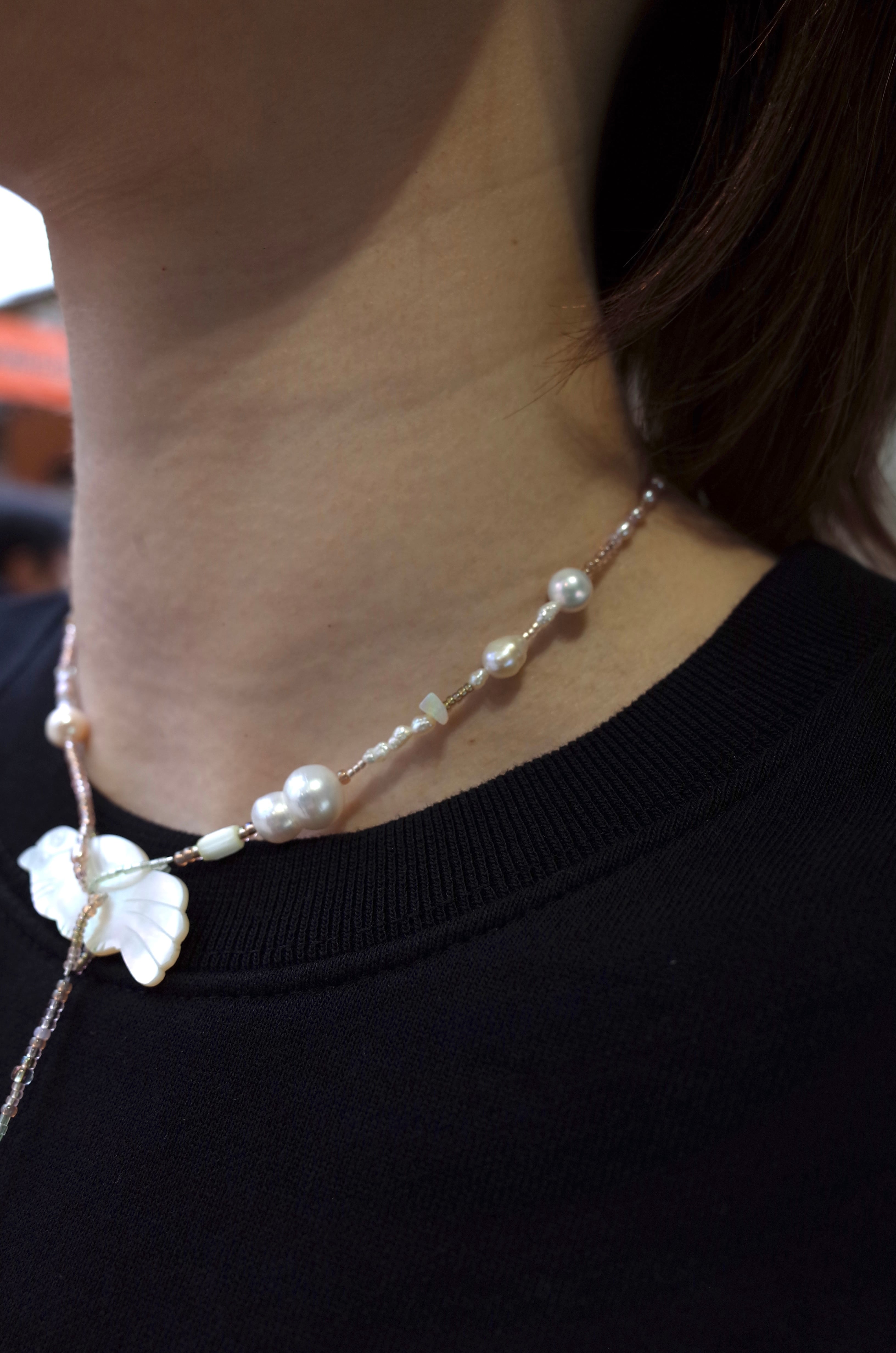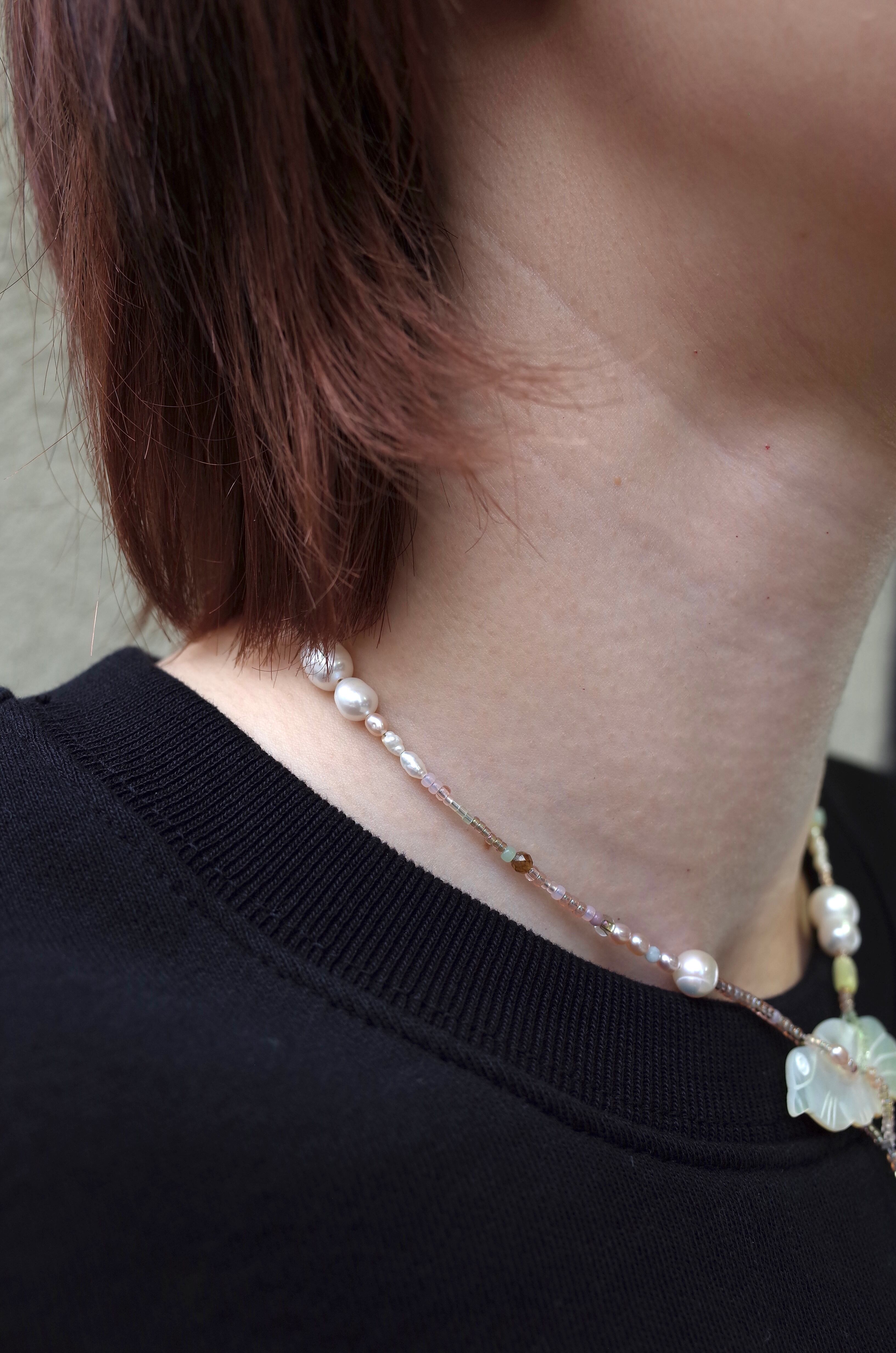 ビジュやパール、ヴィンテージのビーズを使った、1点もののネックレス。