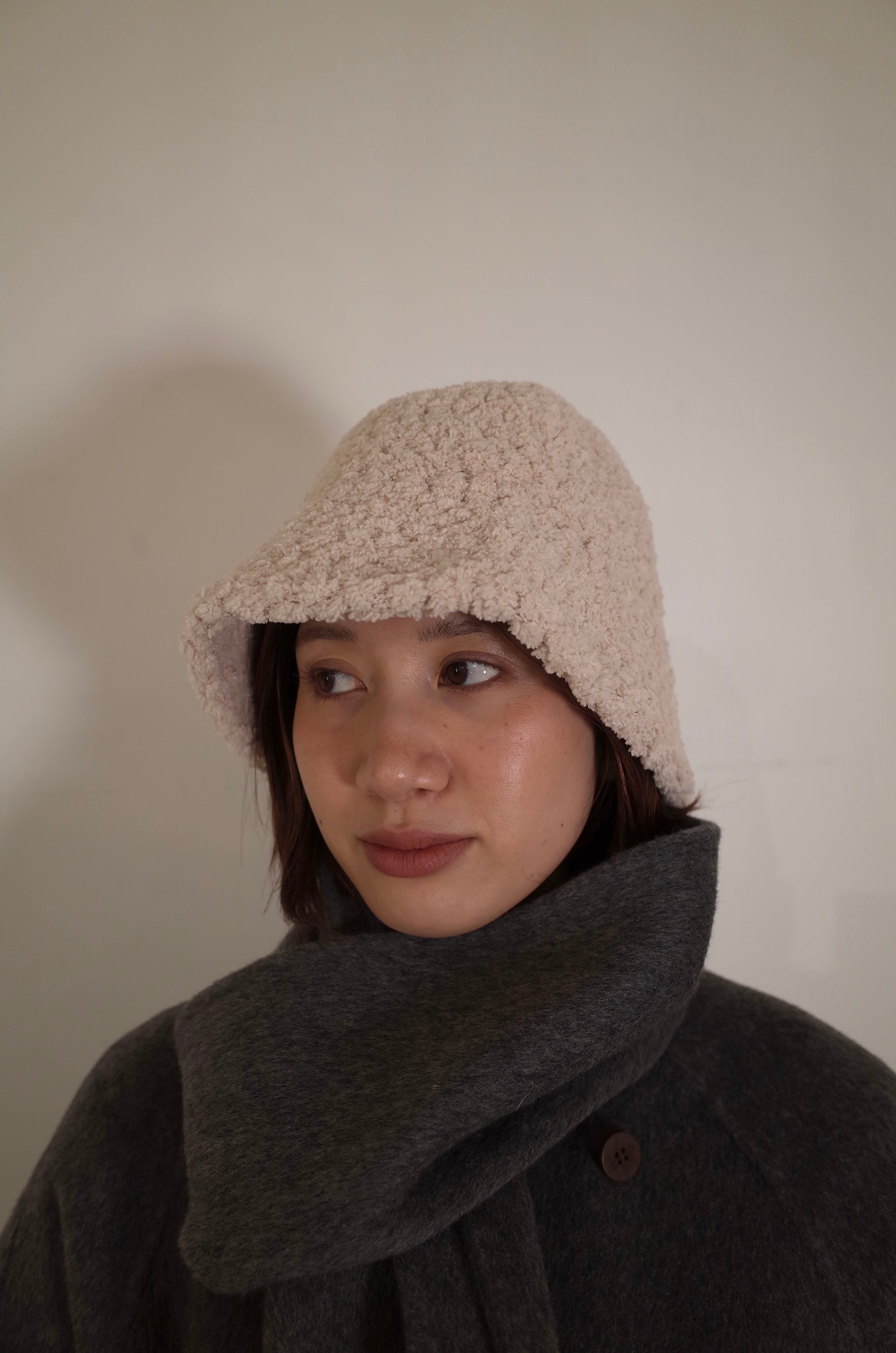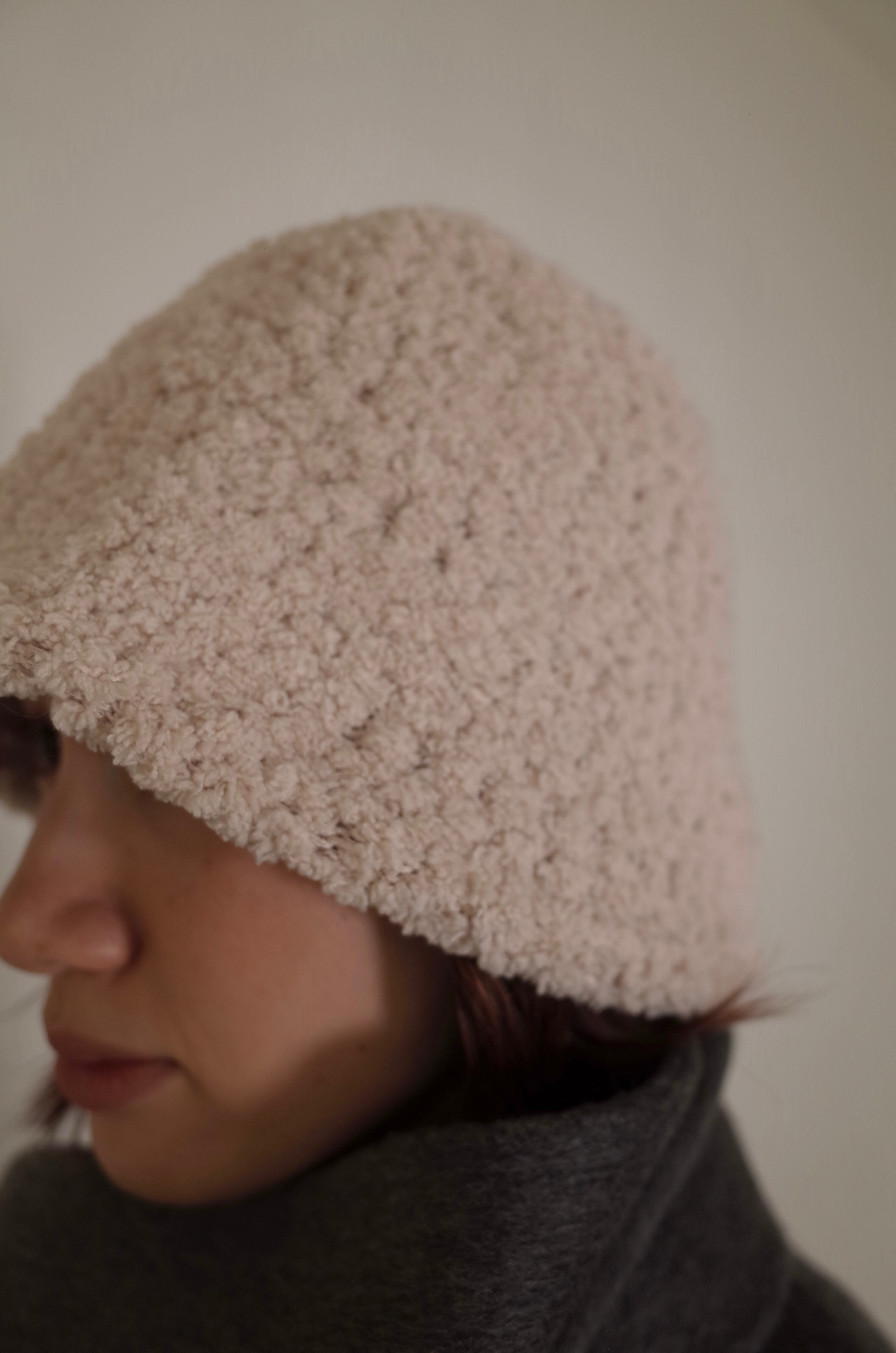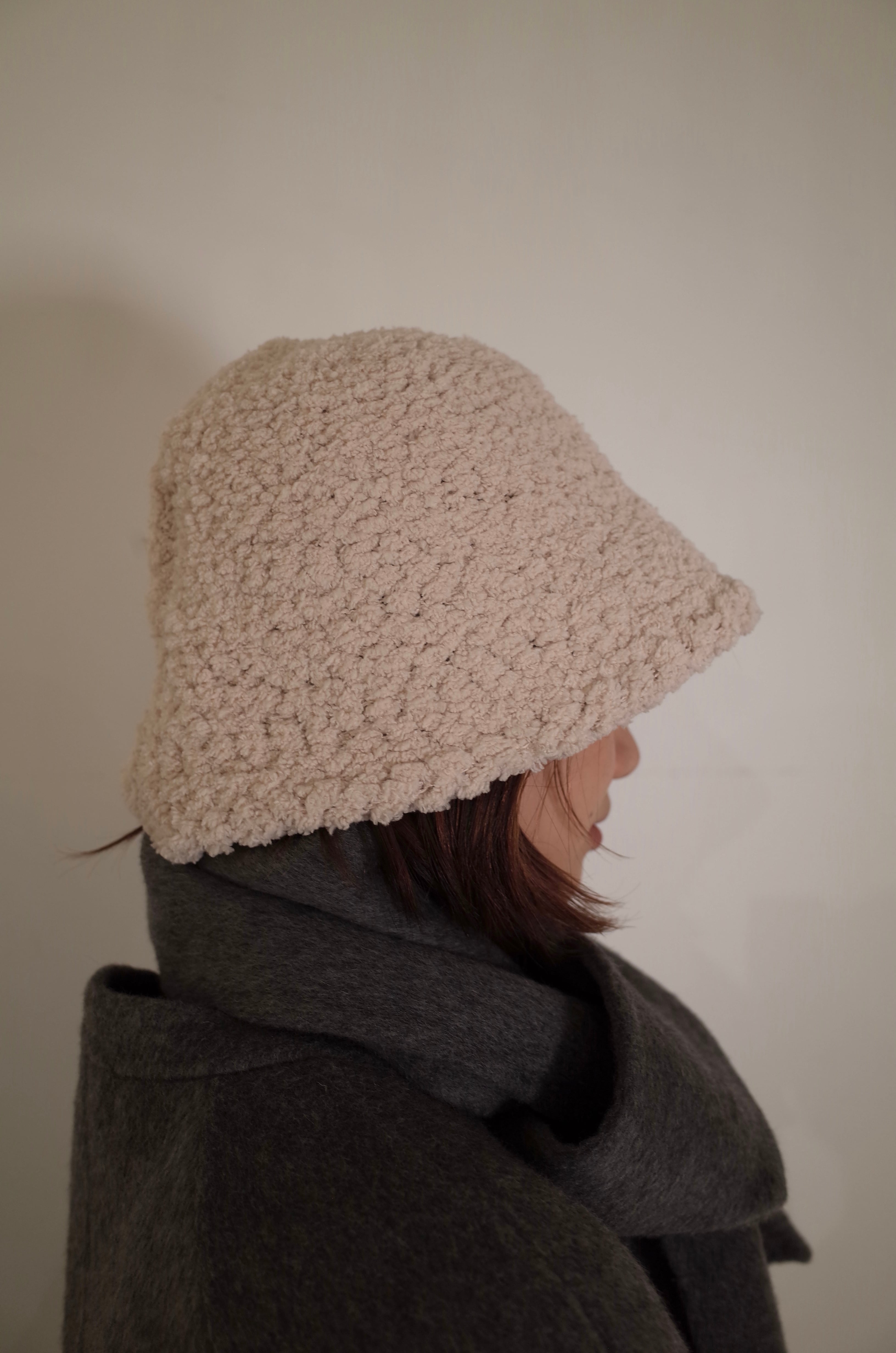 もこもことした素材は暖かく、薄手の生地なので春先も着用いただけます。