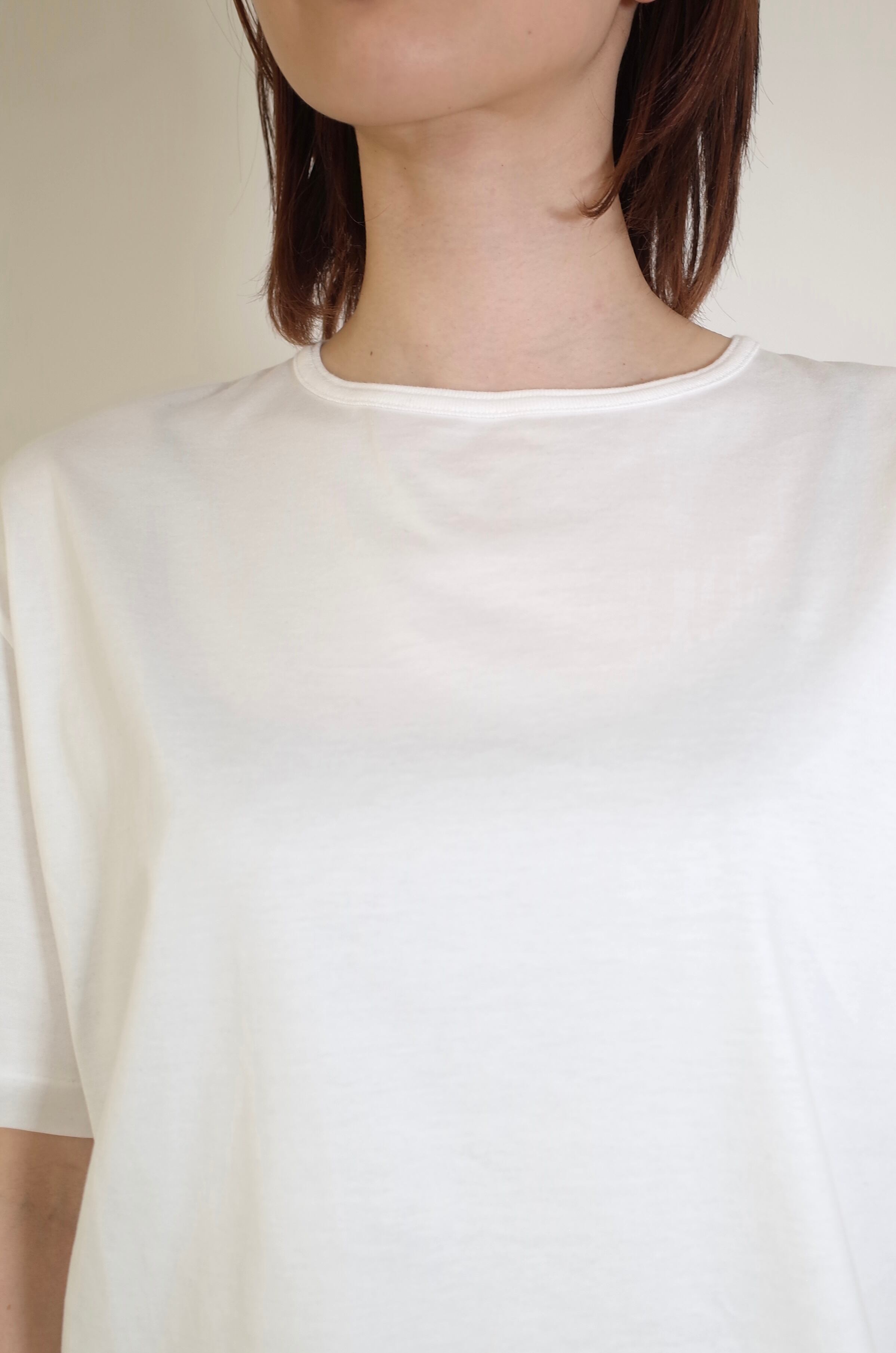 Tシャツでも綺麗めに見えるつるっとした素材感。