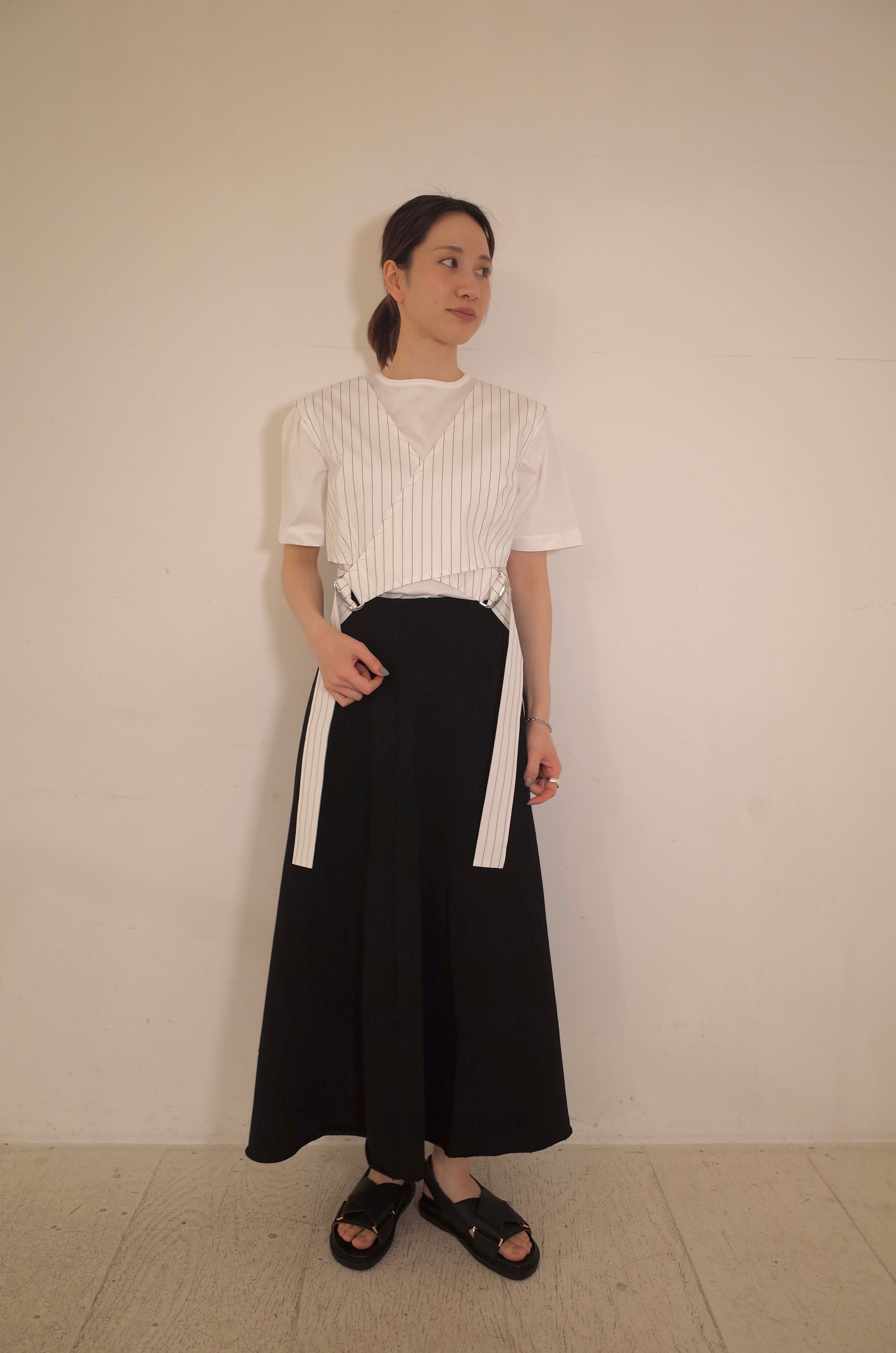 カジュアルな素材ですが上品なAラインとミニマルな表情で、シャツやニットと合わせてクリーンな印象に。