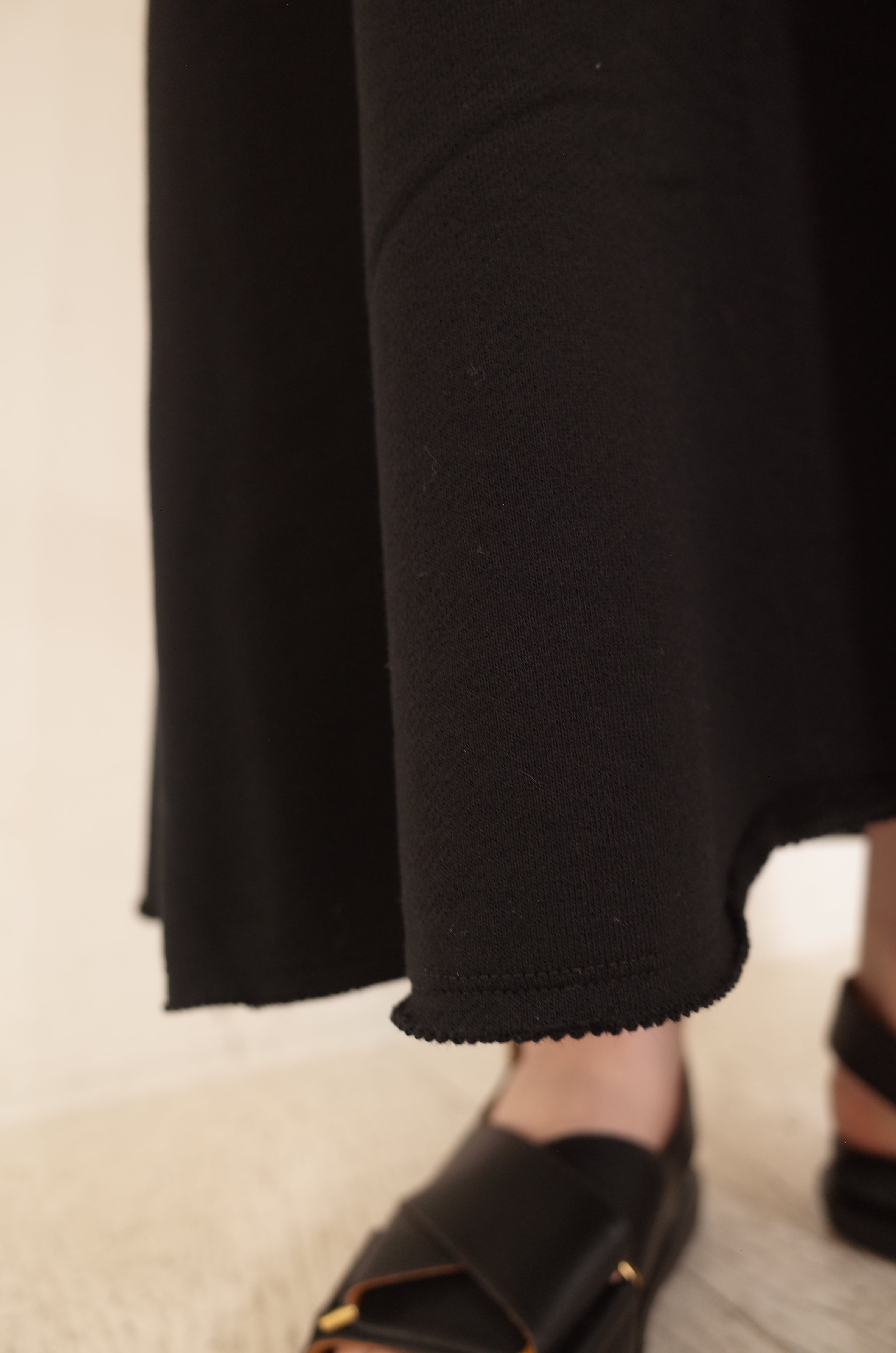程よい肉感と落ち間のある上質な裏毛スウェット素材を採用し、動きに合わせて美しく揺れるナチュラルなフレアシルエットのスカート。
