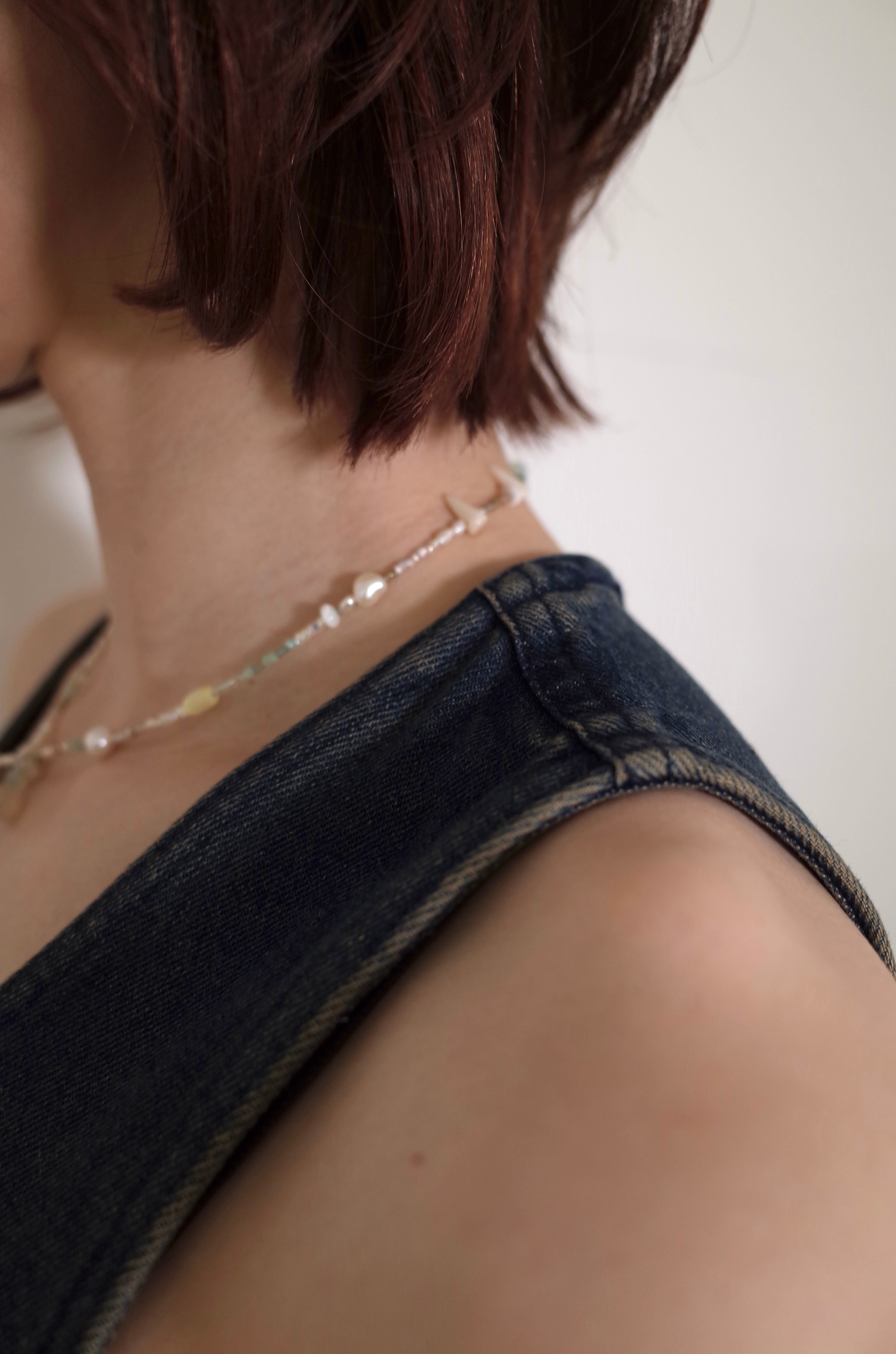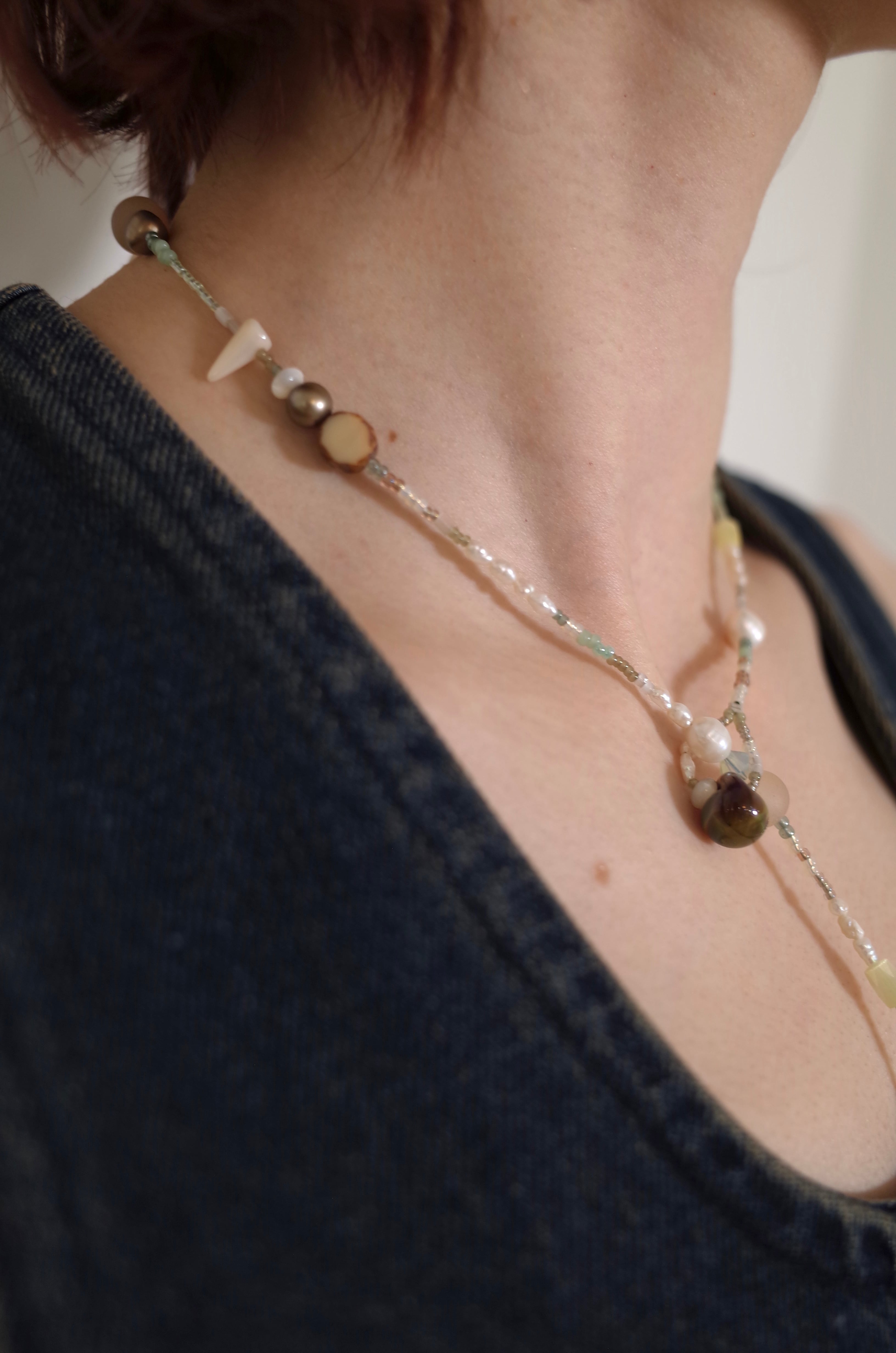 ビジュやパール、ヴィンテージのビーズを使った、1点もののネックレス。
