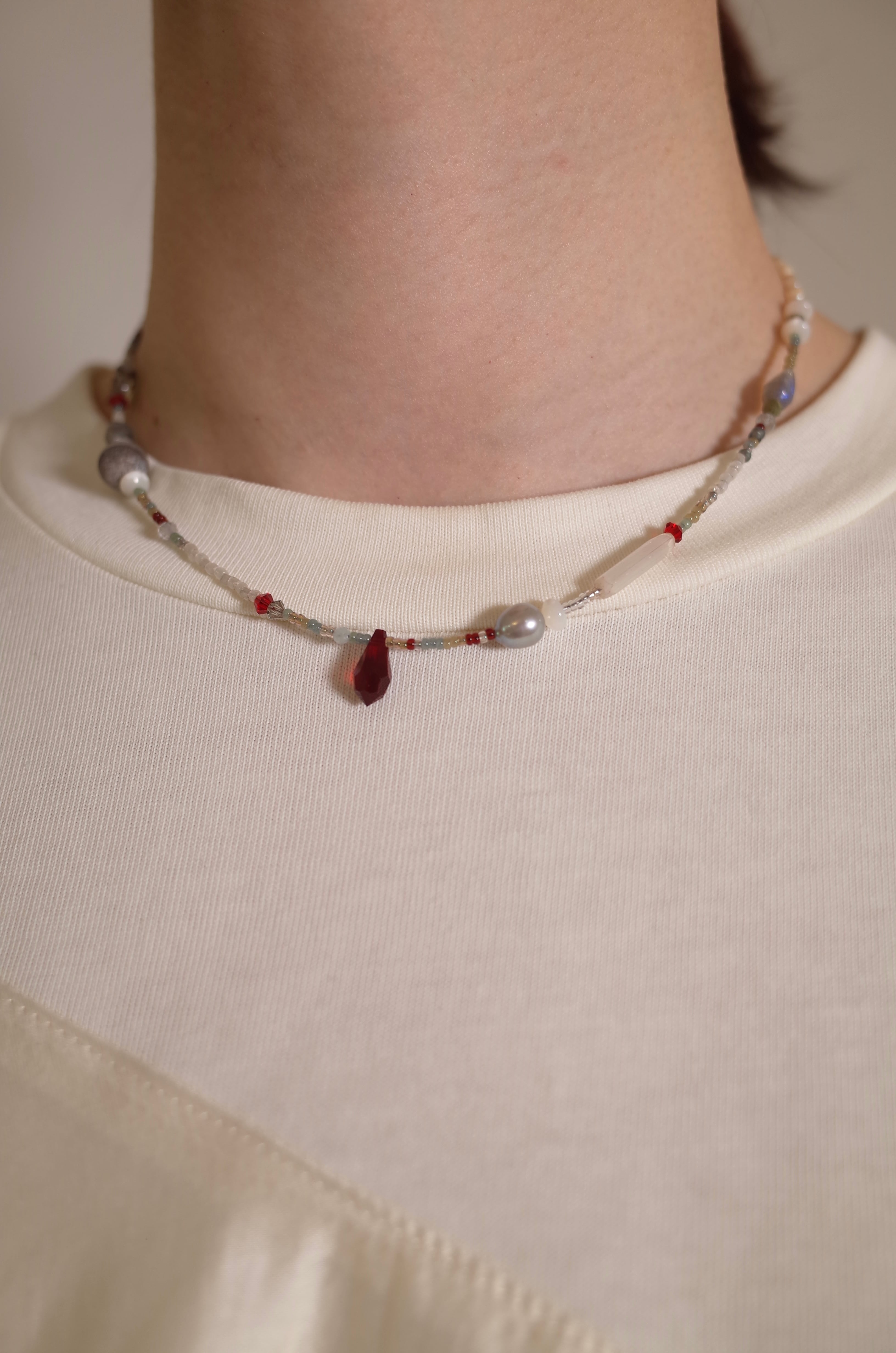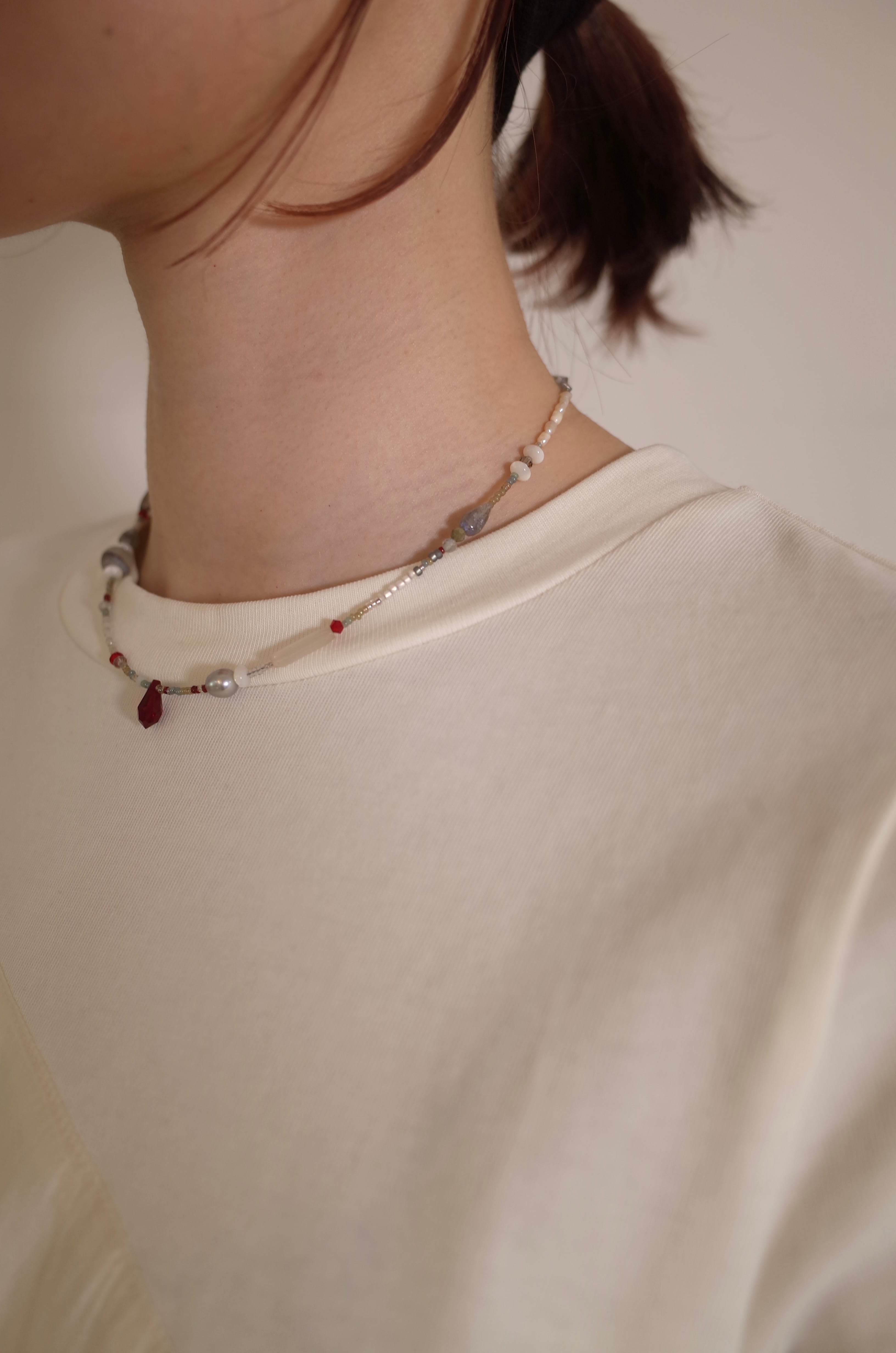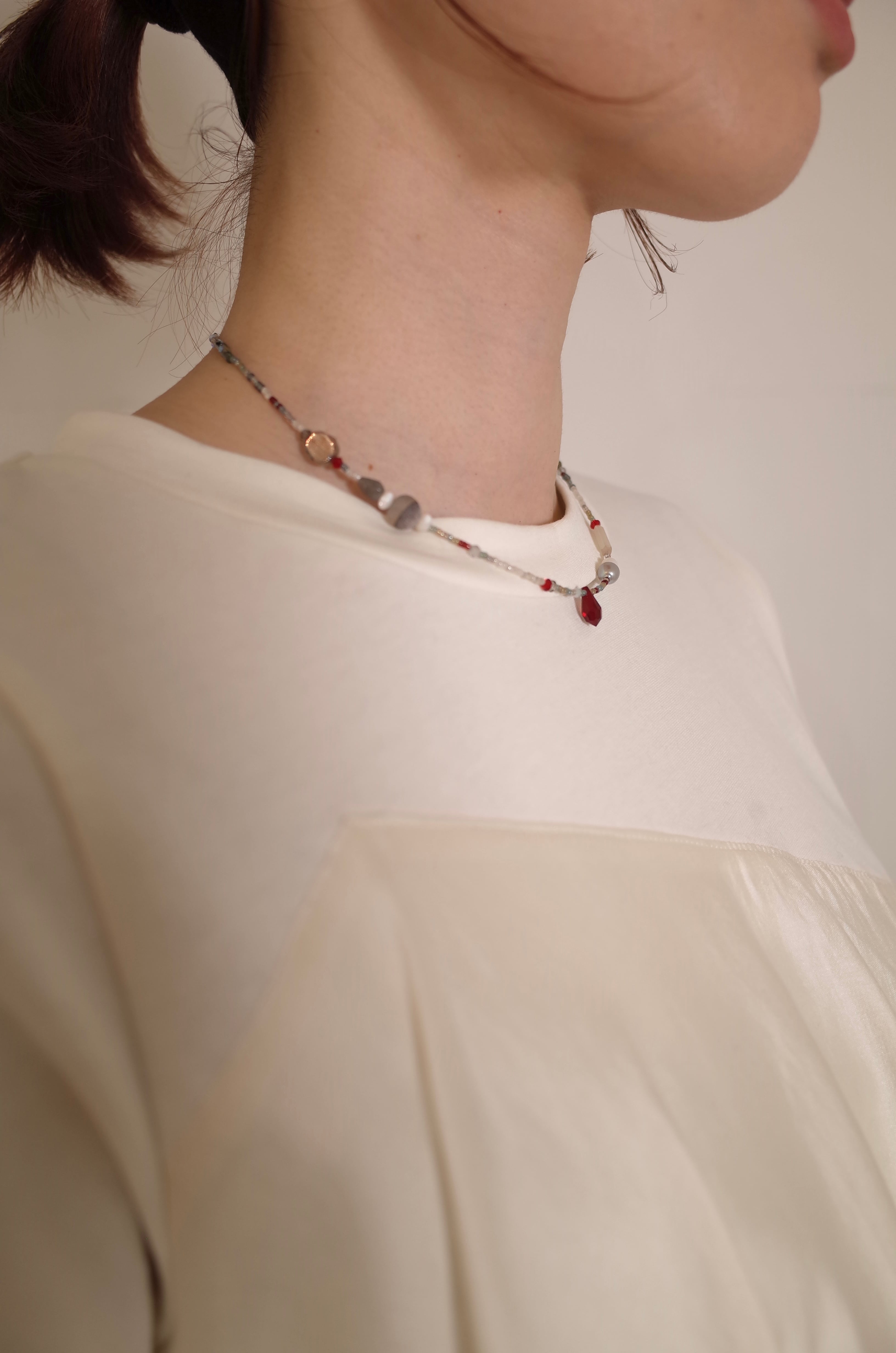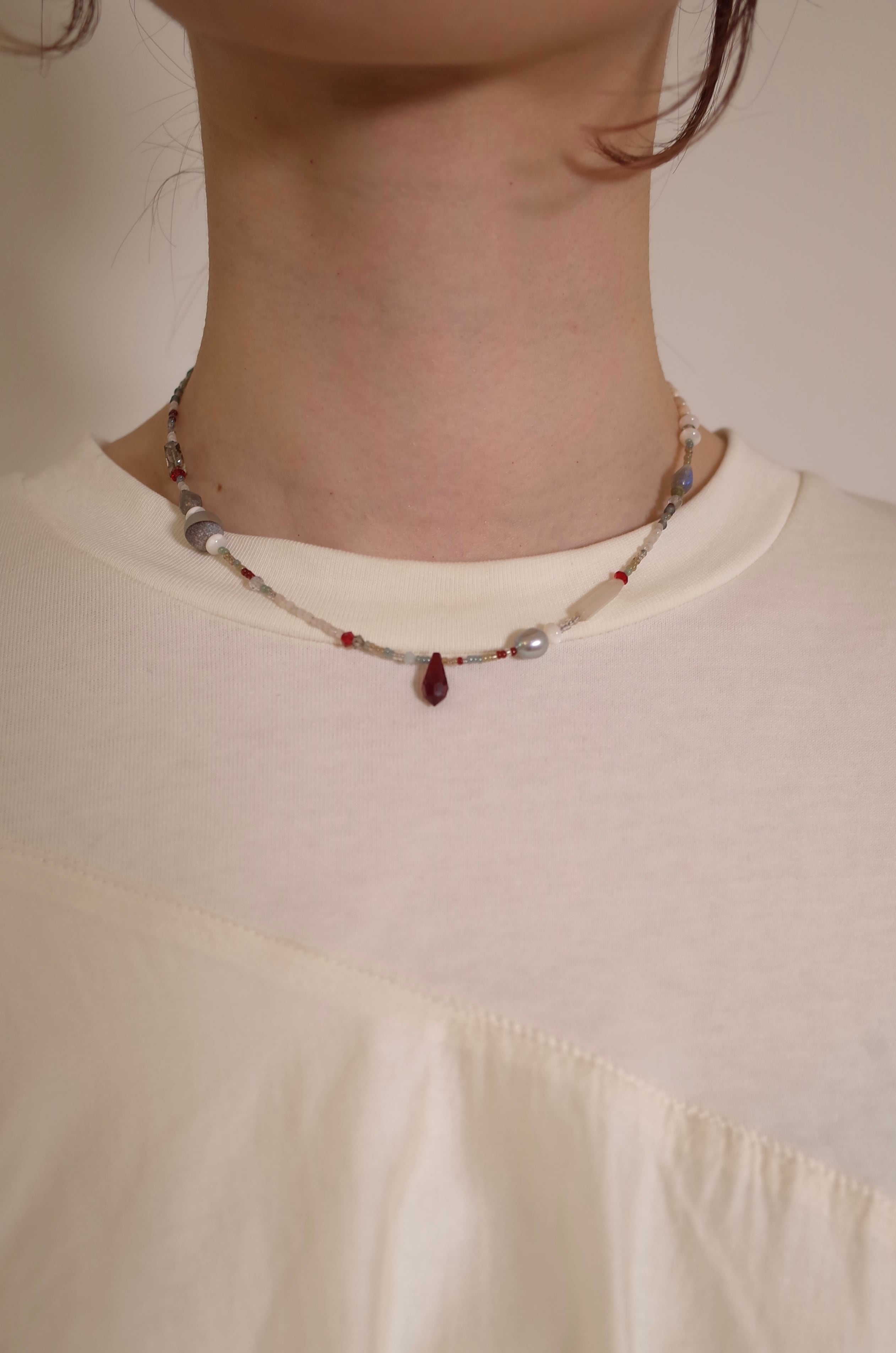 ビジュやパール、ヴィンテージのビーズを使った、1点もののネックレス。