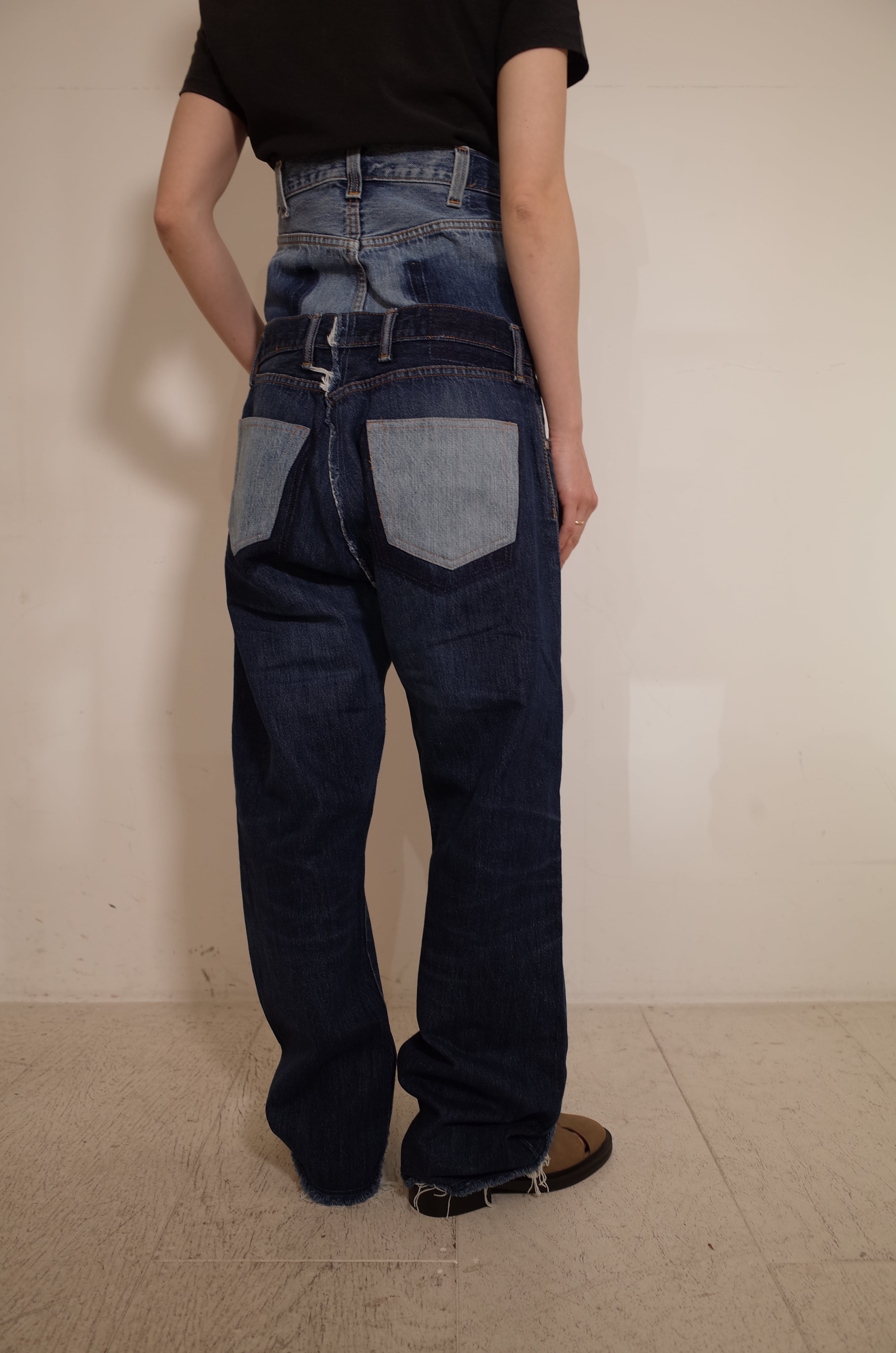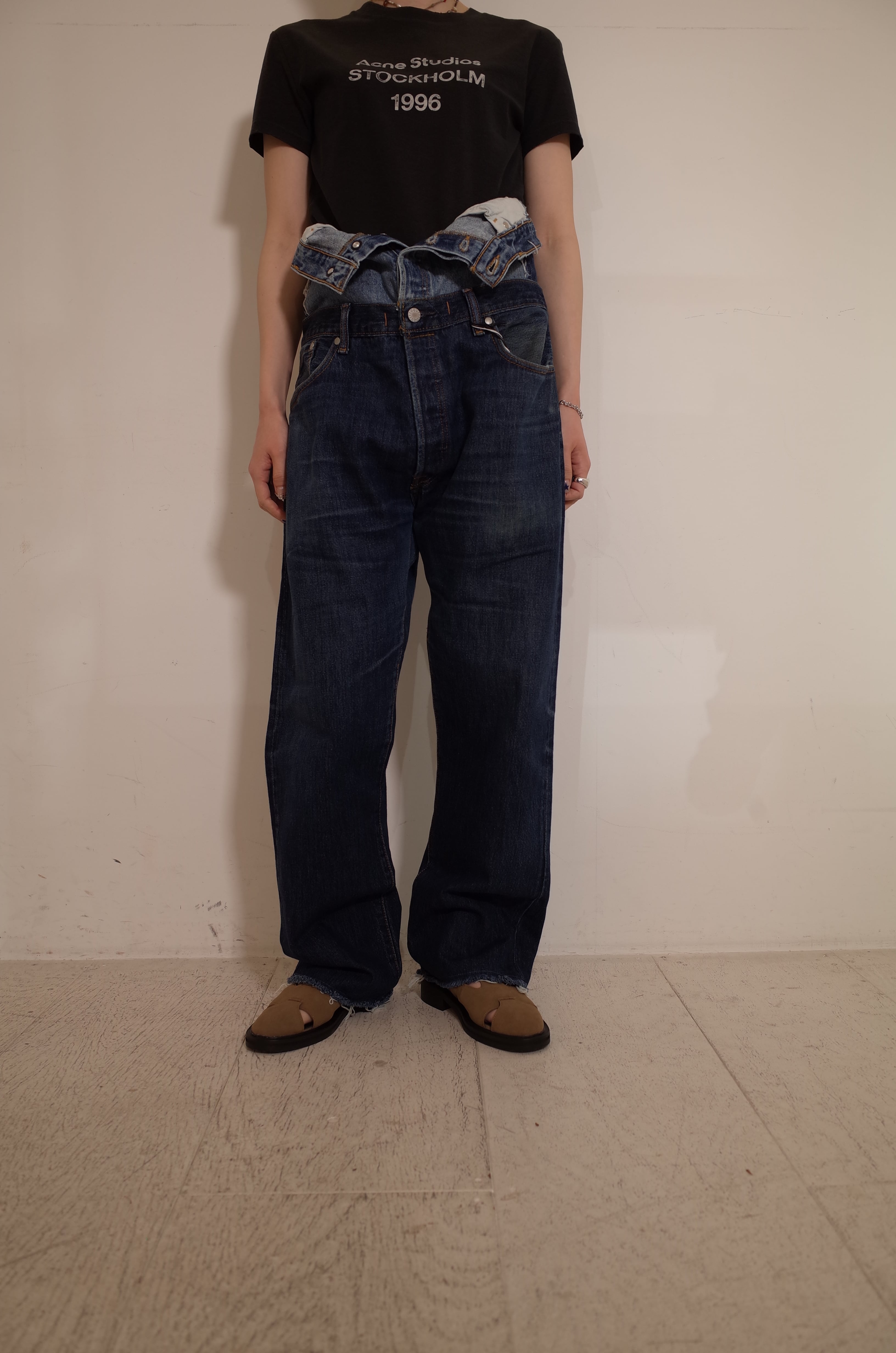 ※こちらの商品は、ヴィンテージのデニムをアップサイクルした商品となります。 その為、一点一点アソートとなっており、素材感や色合いダメージやペンキなどの個体差がございます。 また使用しております生地の素材名を特定することが出来かねます。