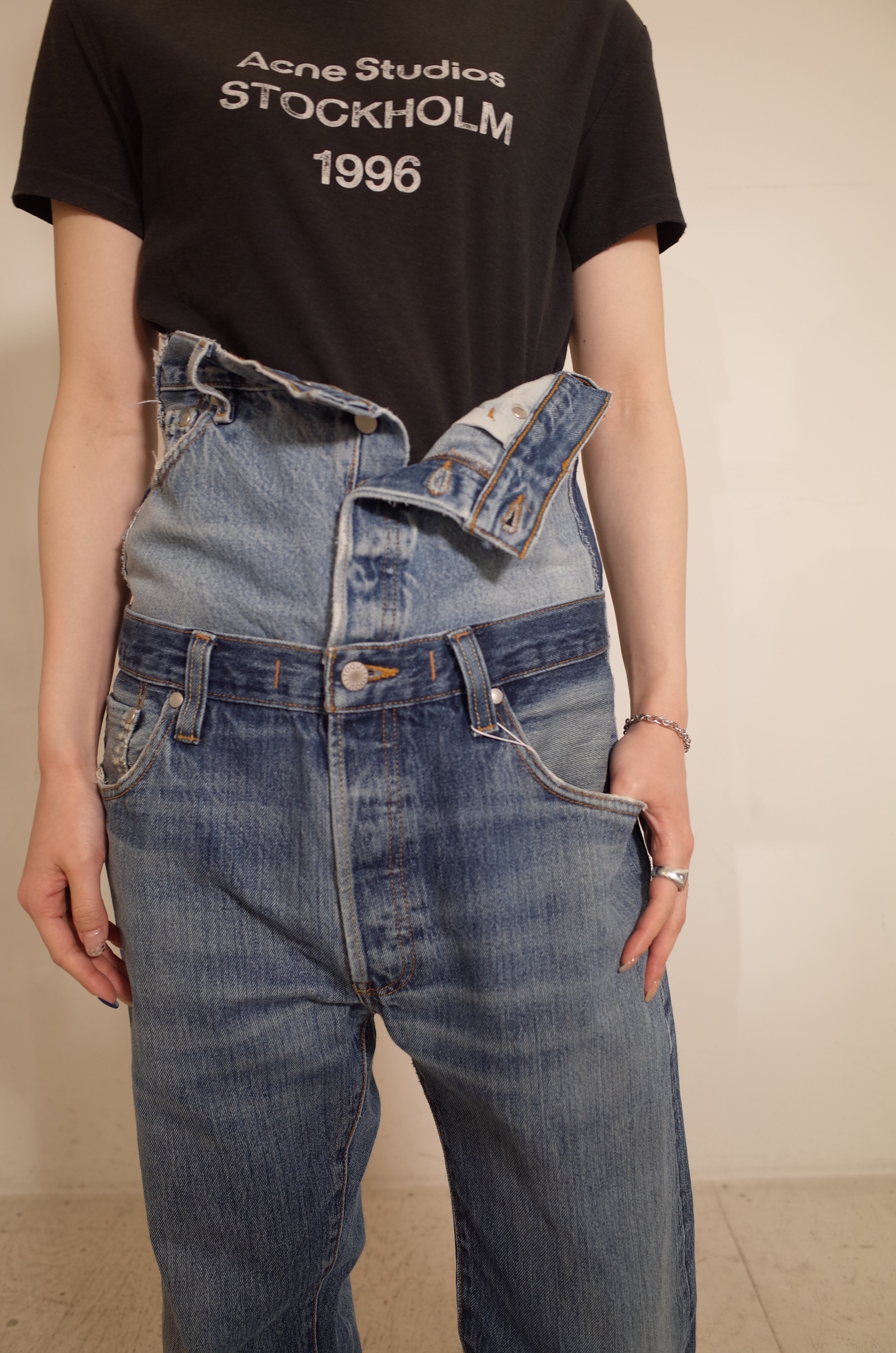 ※こちらの商品は、ヴィンテージのデニムをアップサイクルした商品となります。 その為、一点一点アソートとなっており、素材感や色合いダメージやペンキなどの個体差がございます。 また使用しております生地の素材名を特定することが出来かねます。