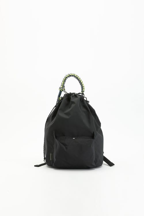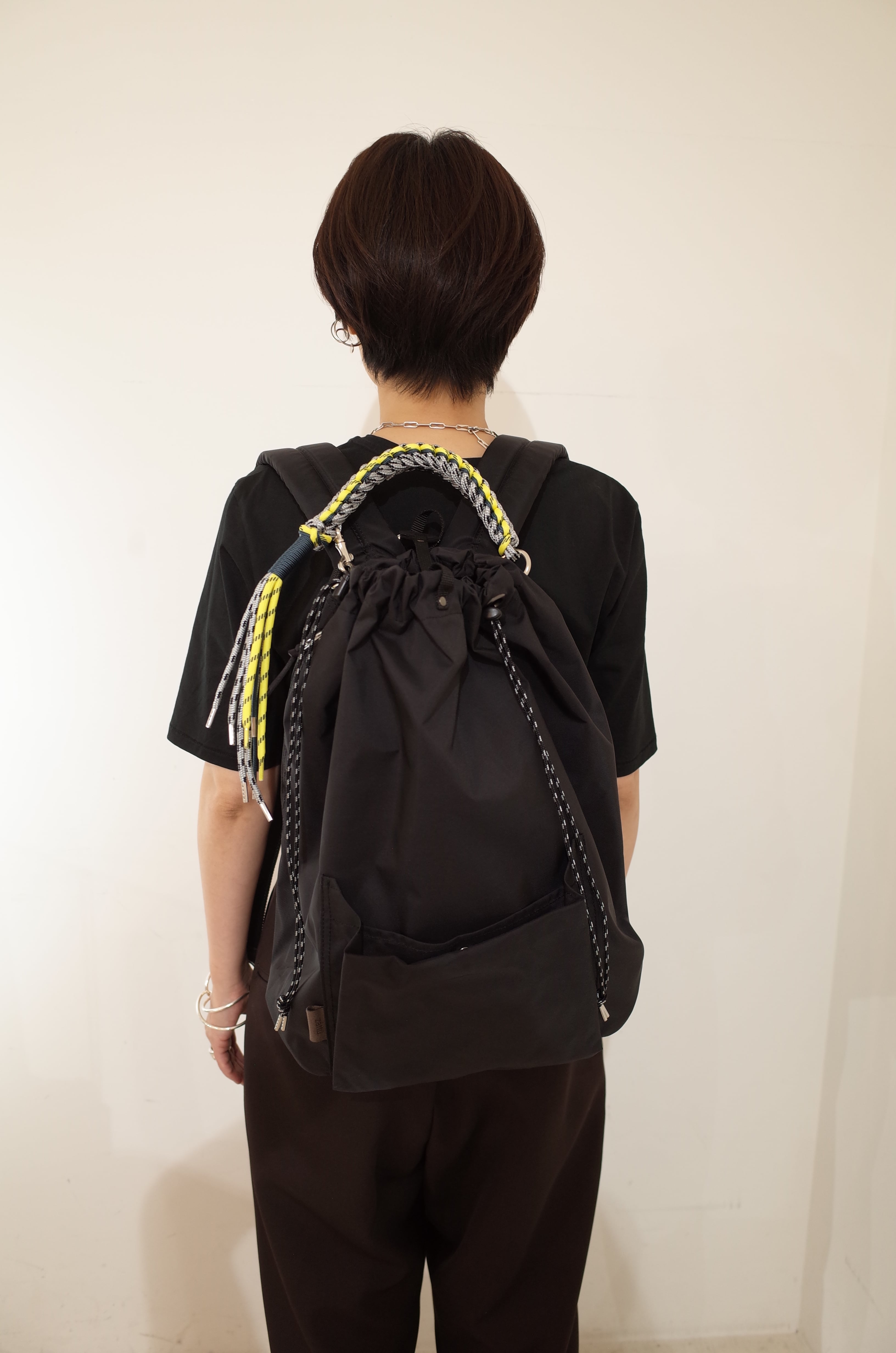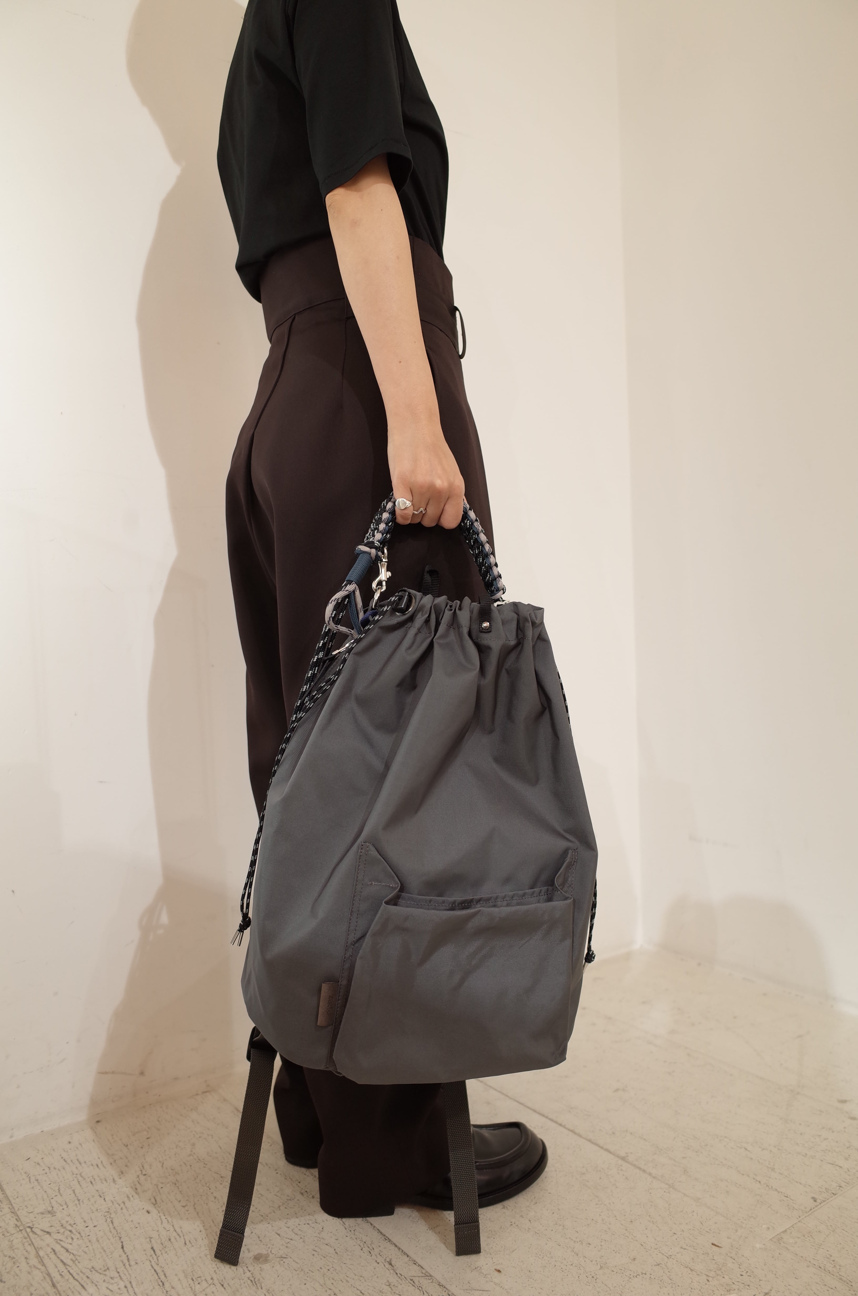 ナイロンシリーズではお馴染みの上質でハリのあるナイロンボディを採用し、引手にはナイロンシリーズを象徴する拘り抜かれたイントレコードが付属。開口部のドローストリングを引っ張って開閉するシンプルな作りで、内外のポケットやたっぷりした底マチがあるので収納力も抜群です。
